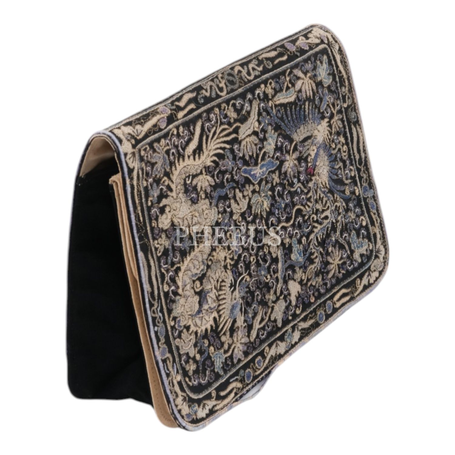 Kuş ve floral motiflerle işlenmiş aynalı kadın çantası, 33x23cm...