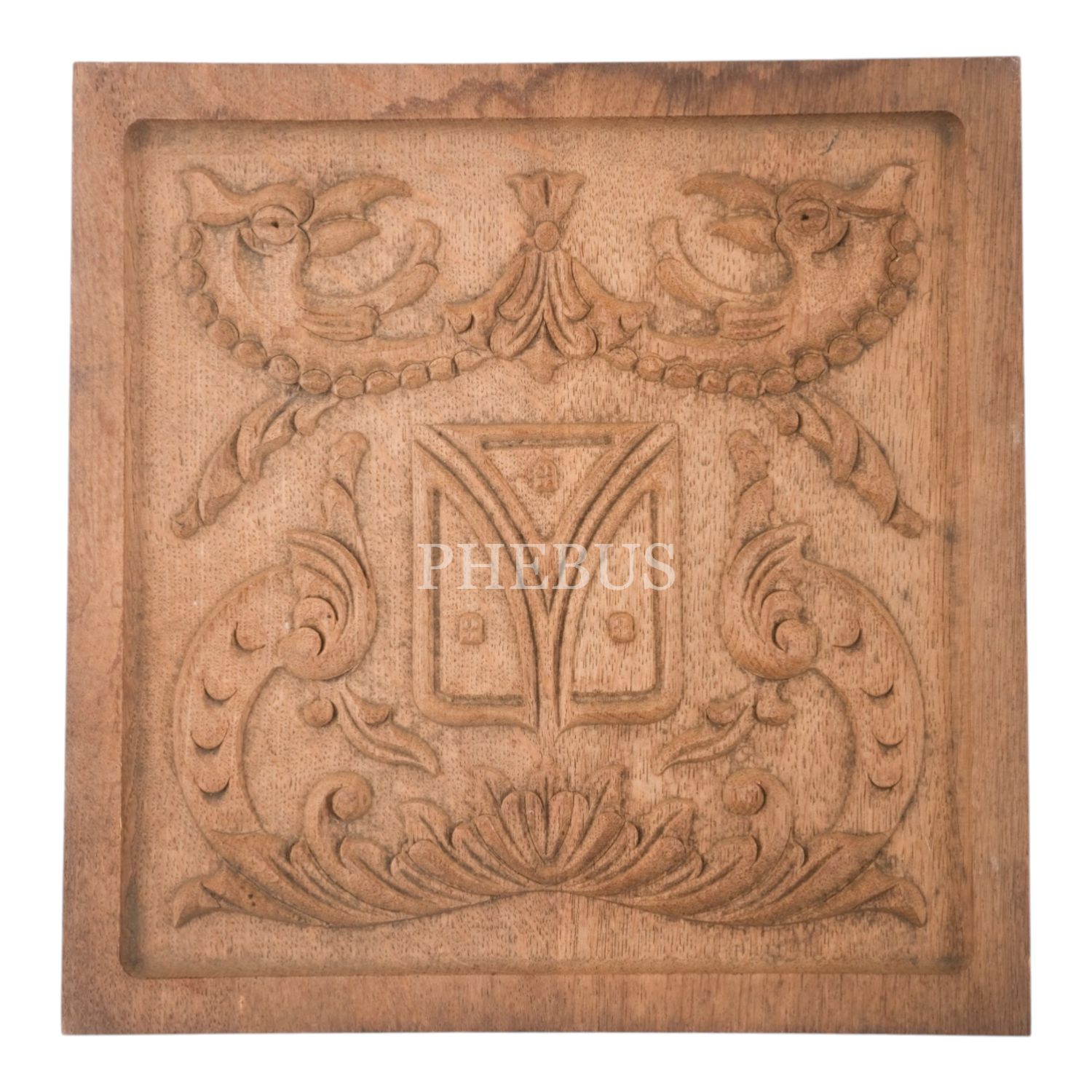Kuş ve floral motiflerle bezeli ahşap oyma plaka, 35x35 cm...