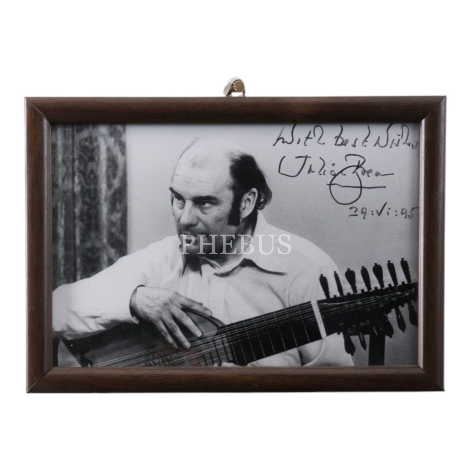 İngiliz klasik gitarist ve lutenist Julian Bream´dan ithaflı ve imzalı fotoğrafı, 22x16 cm...