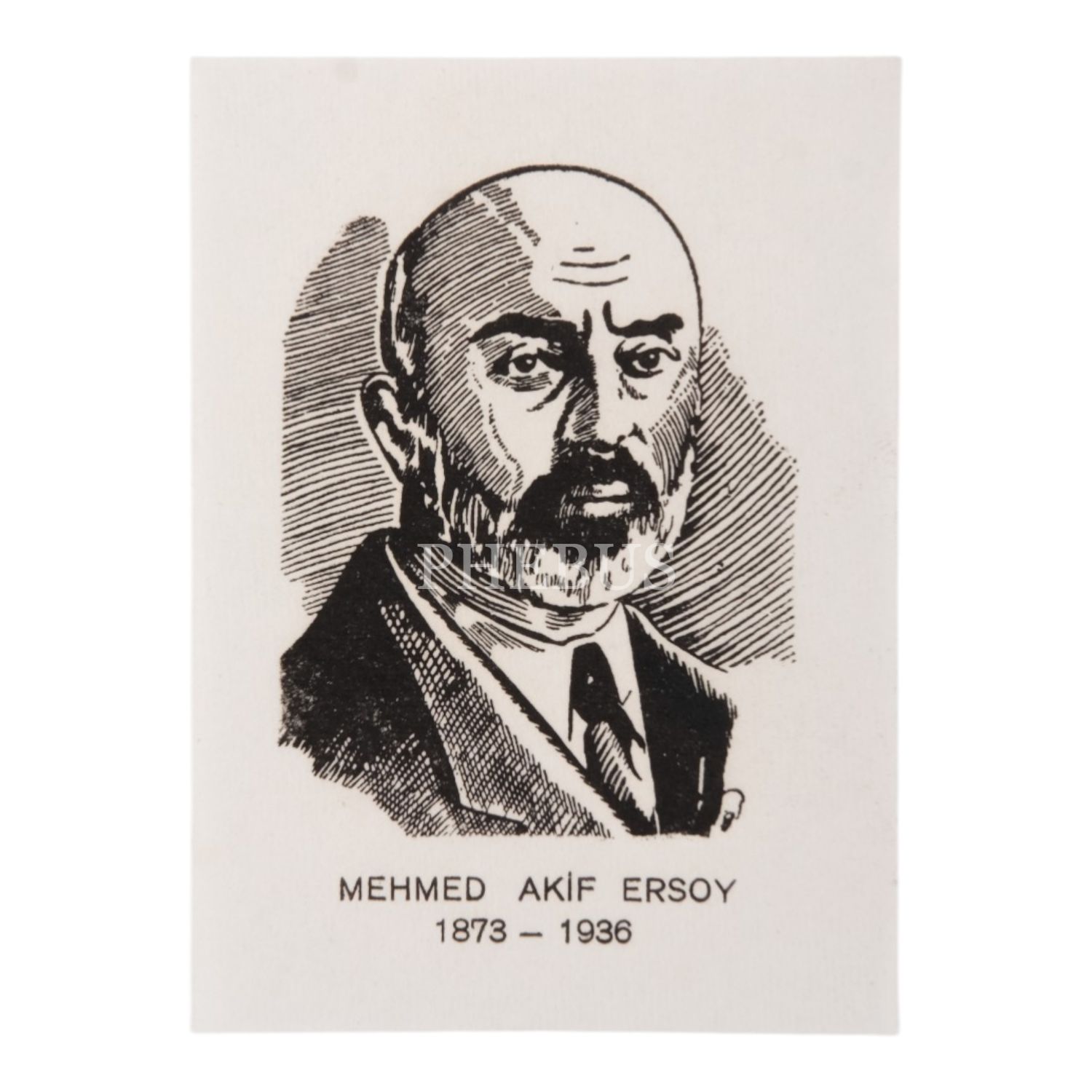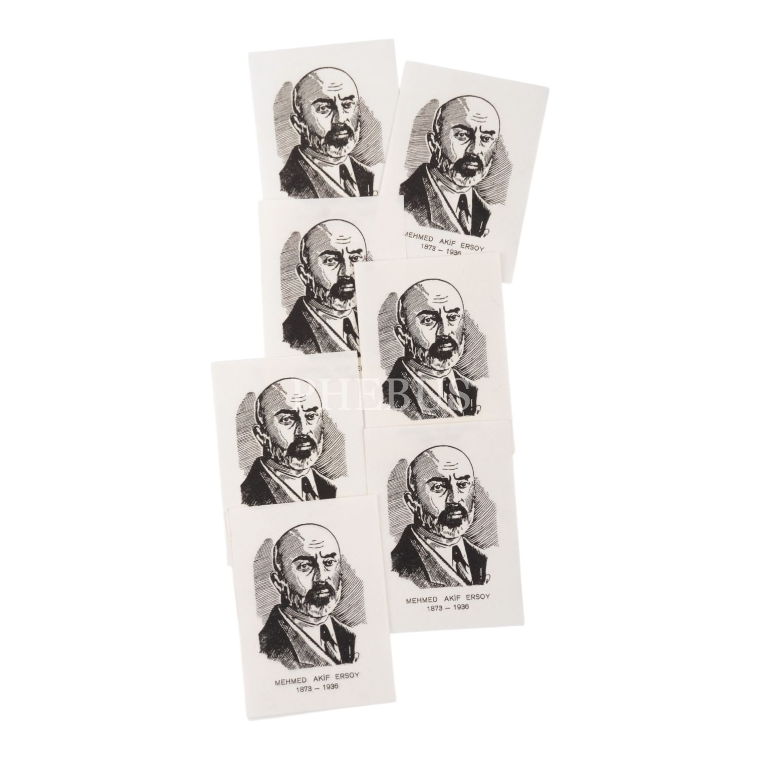 Mehmed Akif Ersoy´un vefatından sonra hazırlanmış, bir portresiyle birlikte doğum ve ölüm tarihlerinin yer aldığı kâğıt hatıra rozetleri, 9 adet, 5x7 cm...