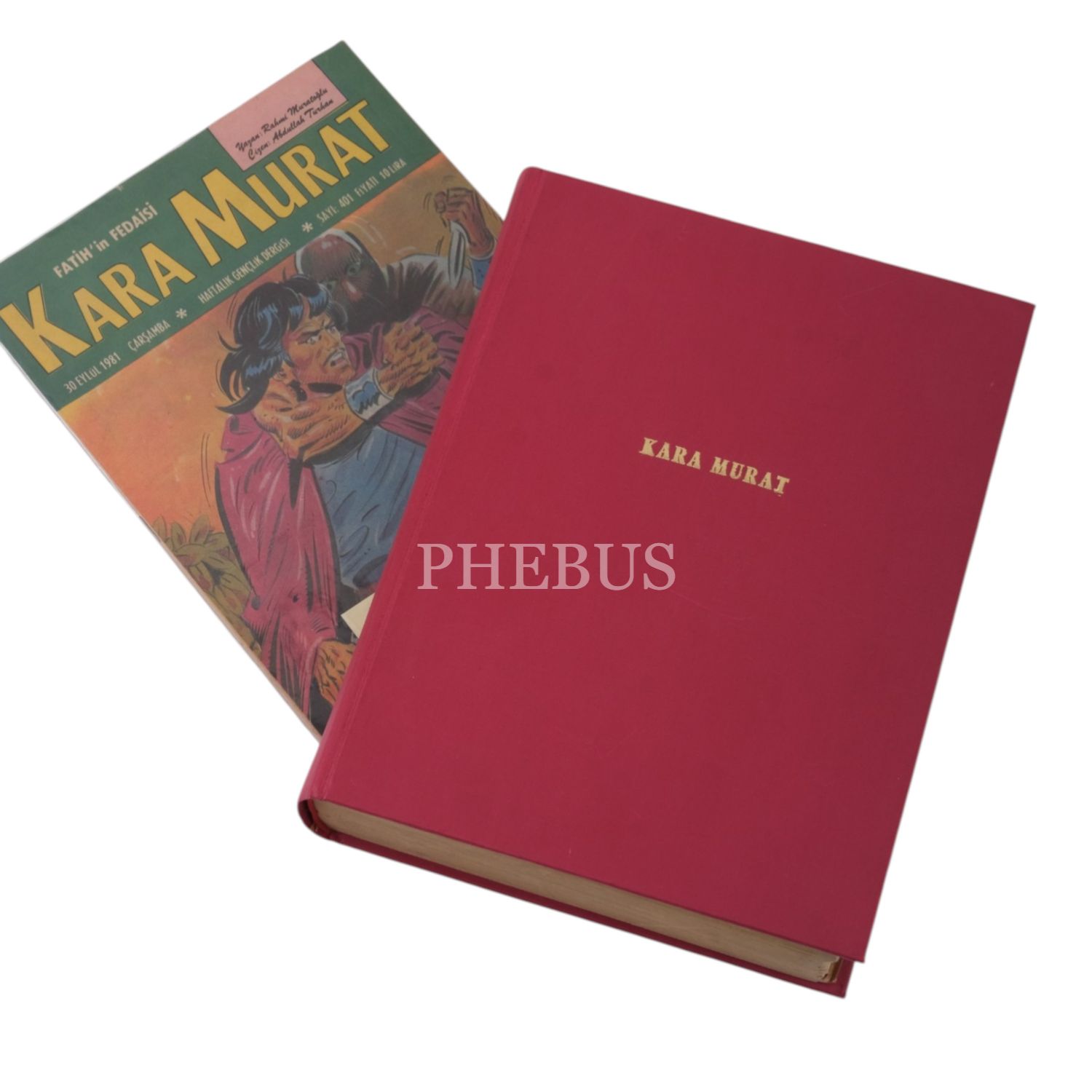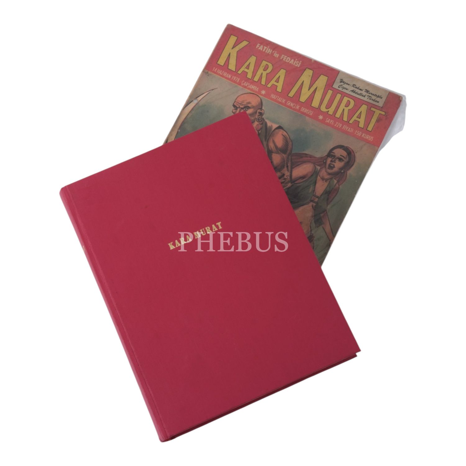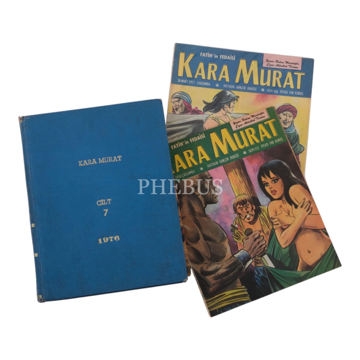 Lot içeriği: 1) "Kara Murat Cilt 6" başlıklı cilt içinde; 13 Aralık 1978 ilâ 24 Ekim 1979 tarihleri arasında yayımlanan 255-300 arası sayılar (261. sayı eksik) + Ocak 1980 tarihli 112. sayı. 2) "Kara Murat Cilt 7 1976" başlıklı cilt içinde; 22 Aralık 1976 ilâ 1 Haziran 1977 tarihleri arasında yayımlanan 152-175 arası sayılar (166. sayı sonradan ilave edilmiş). 3) "Kara Murat 207-256" başlıklı cilt içinde; 11 Ocak 1978 ilâ 20 Aralık 1978 tarihleri arasında yayımlanan 207-256 arası sayılar (229. sayı sonradan ilave edilmiş). 4) "Kara Murat 363-414" başlıklı cilt içinde; Ocak 1981 ilâ 30 Aralık 1981 tarihleri arasında yayımlanan 363-414 arası sayılar (401. ve 405. sayılar sonradan ilave edilmiş).