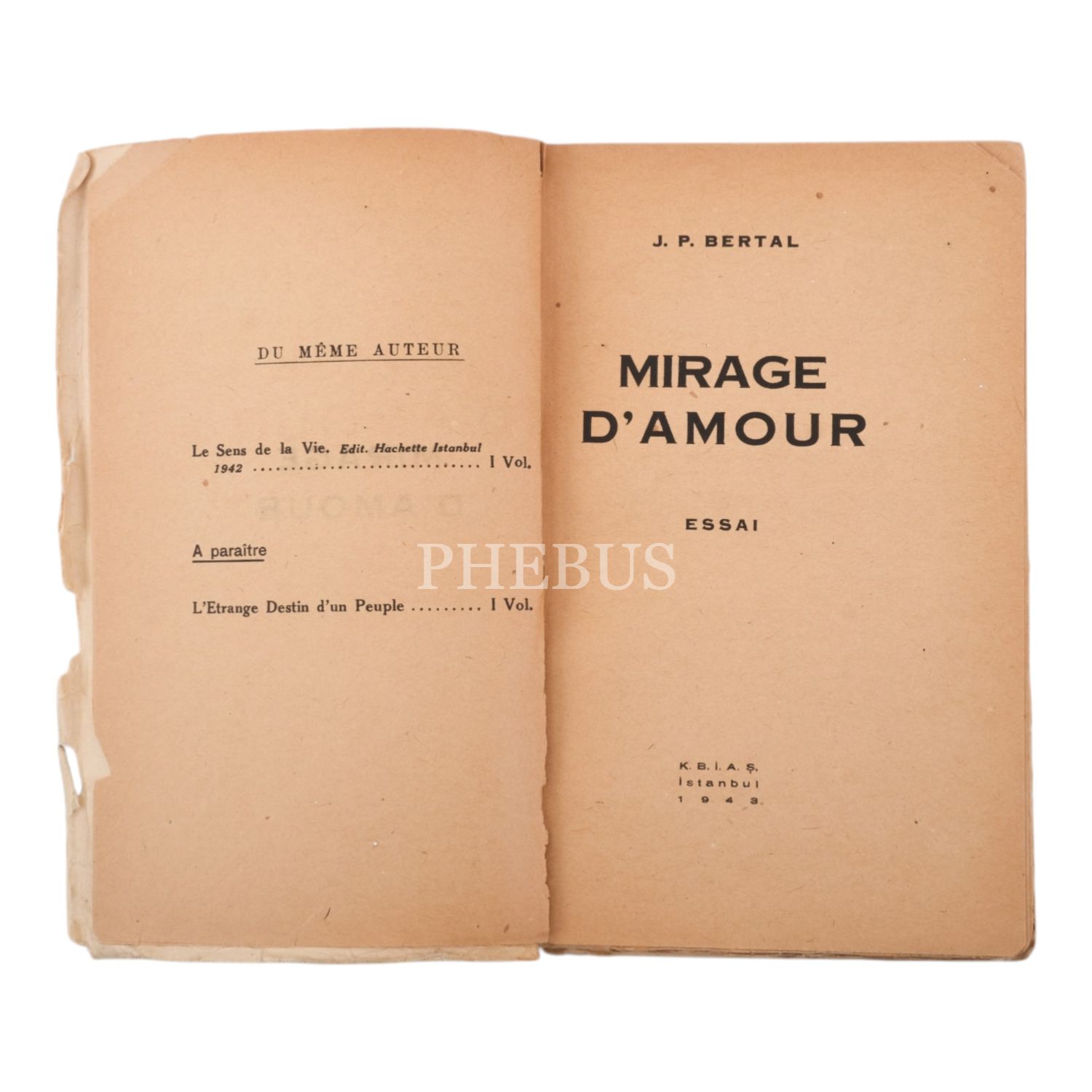 MIRAGE D´AMOUR, J. P. Bertal, 1943, Editions P. M., 250 sayfa, 13x19 cm...