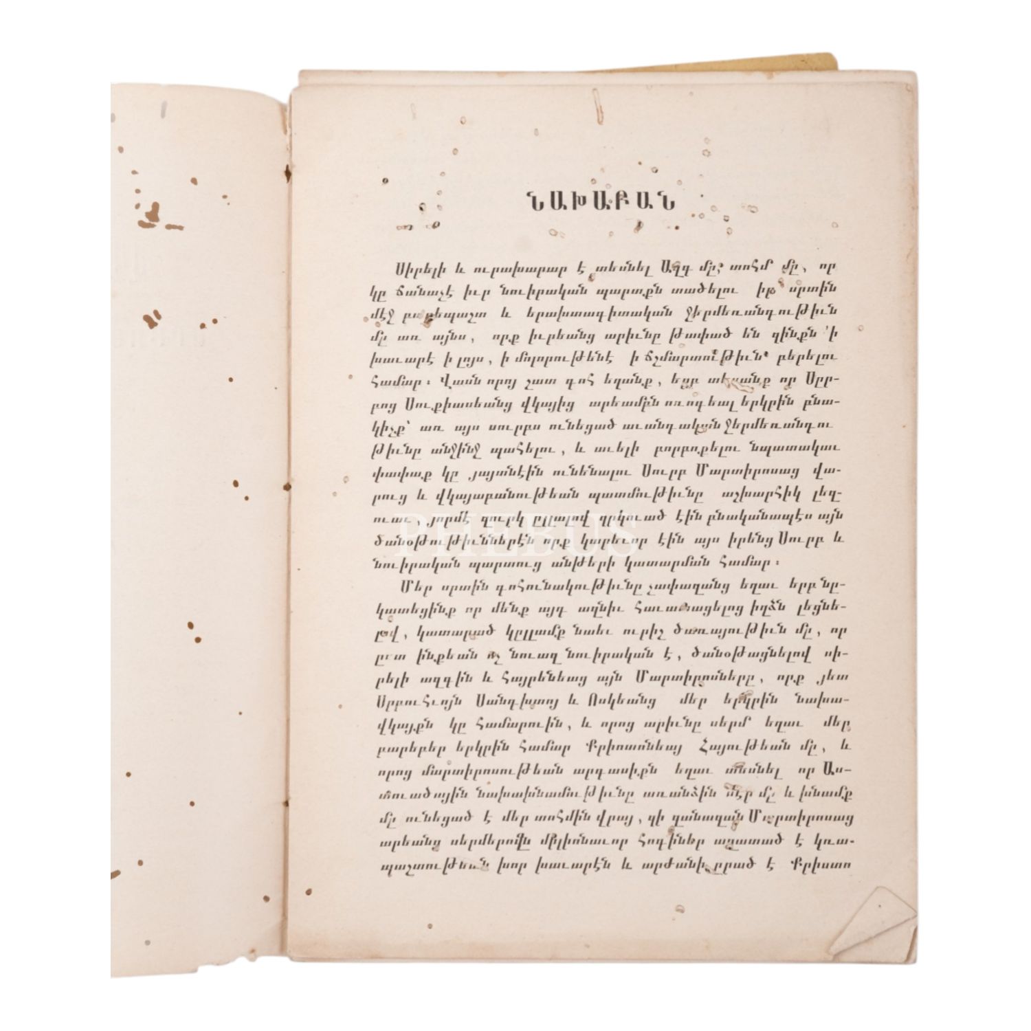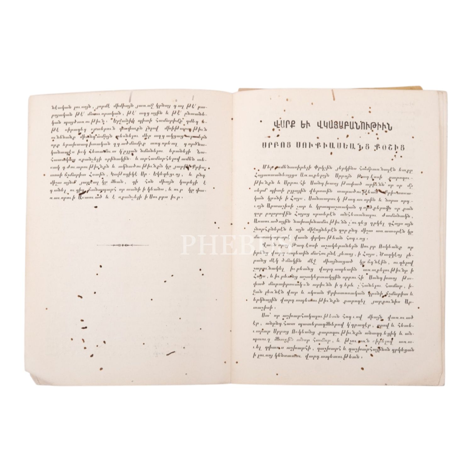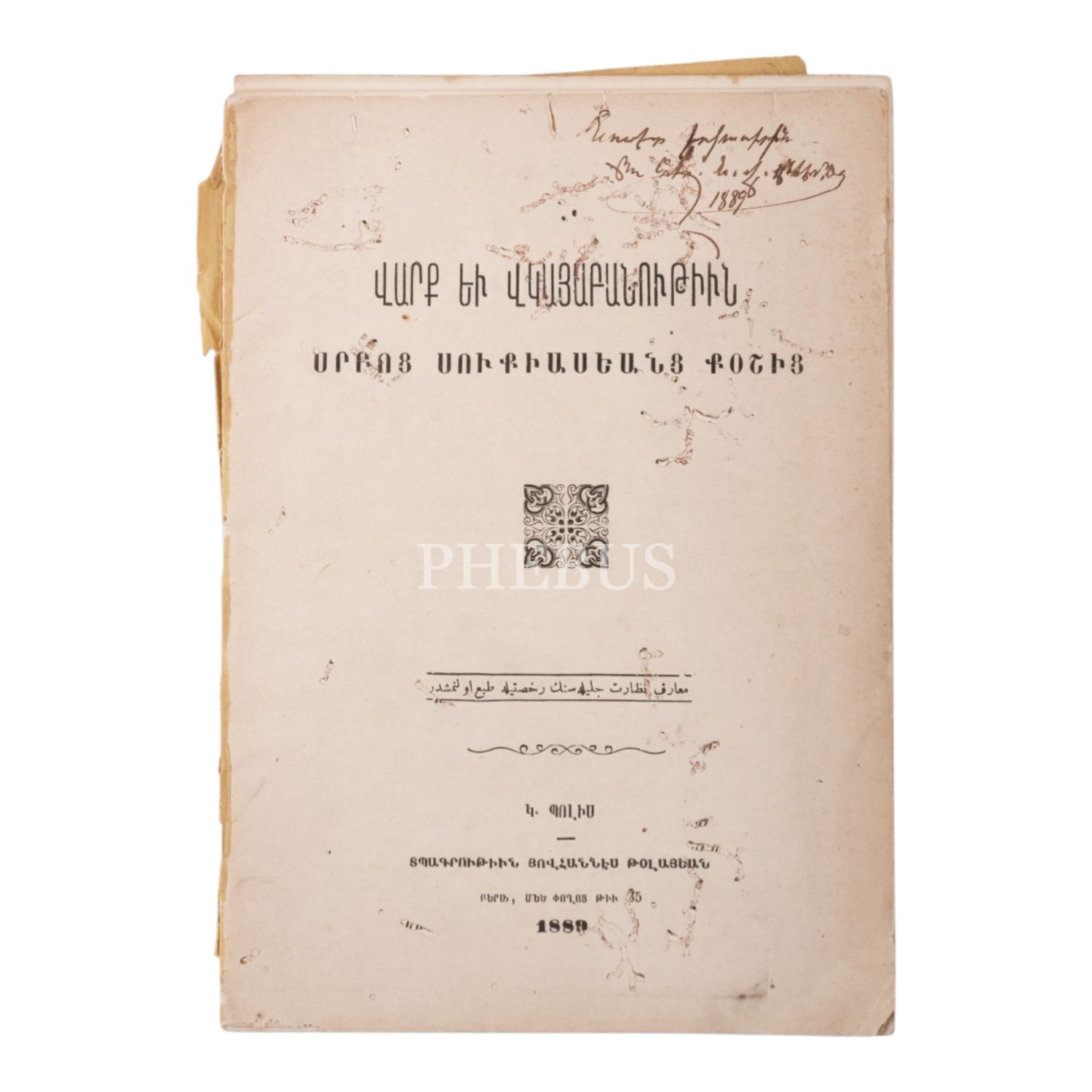 Vark Yev Vıgayapanutyun (Ahlak ve Davranış), Aziz Sukias Koş, İstanbul: Hovhannes Tolayan Matbaası, 1889, 28 sayfa, 14,5x20 cm...