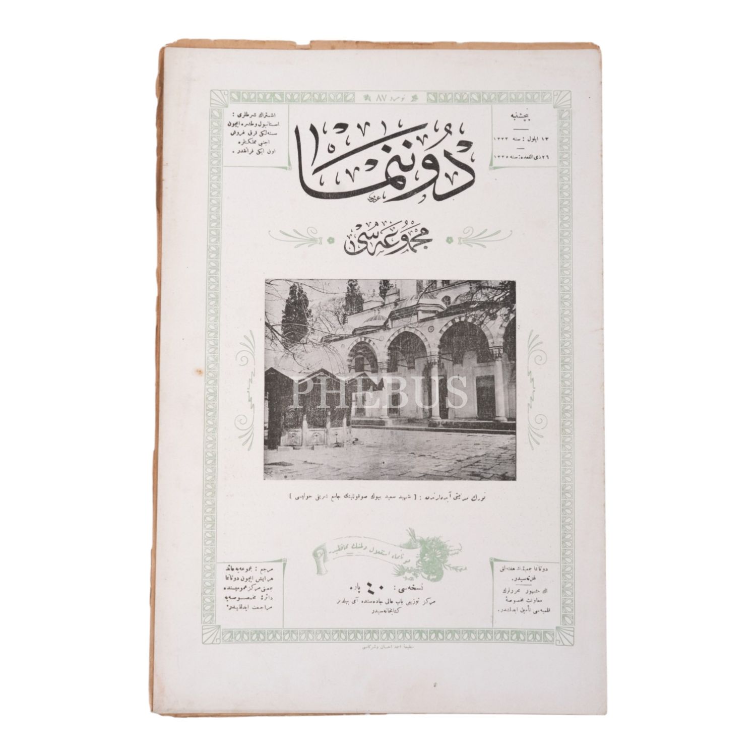 Şehid Sait Büyük Sokollu Camii´nin avlusunun bir fotoğrafına kapağında yer veren DONANMA MECMUASI´nın 13 Eylül 1333 tarihli 87. sayısı, 16 sayfa, 25x38 cm...
