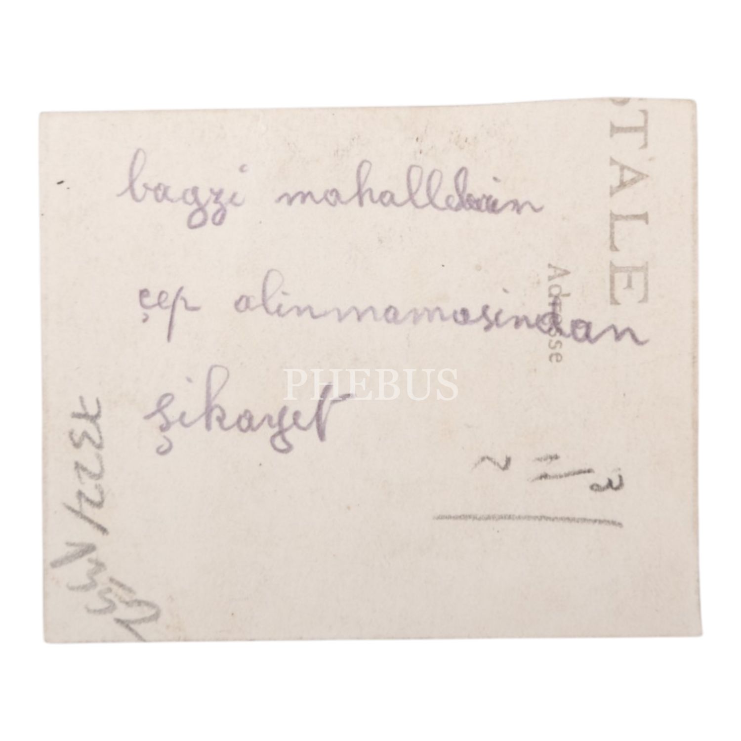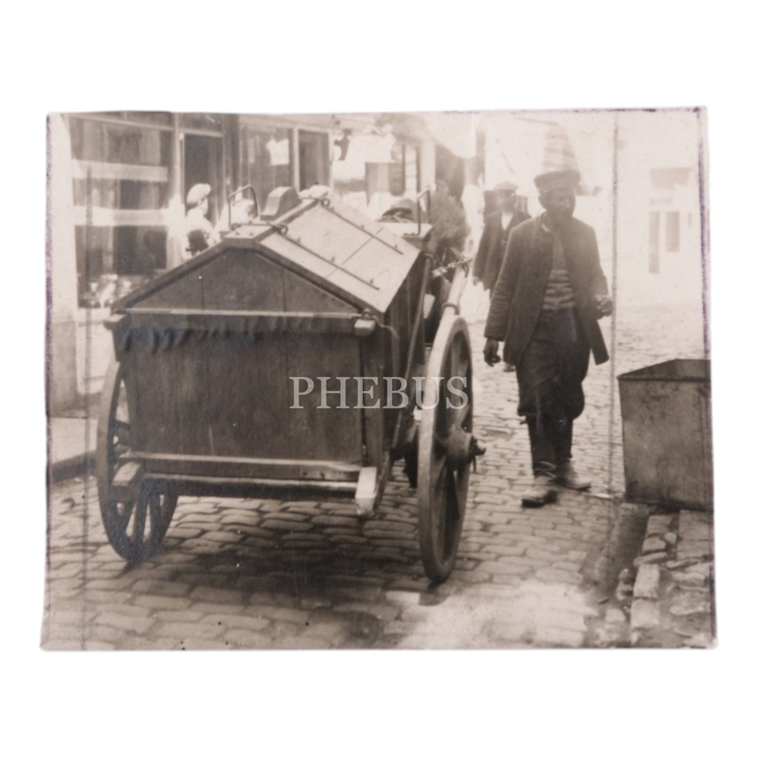 Erken Cumhuriyet döneminden bir çöp arabası, fotoğrafın arka yüzüne, bazı mahallelerin çöplerin toplanmamasından şikayetçi olduğuna dair bir not düşülmüştür, 7,5x6 cm...