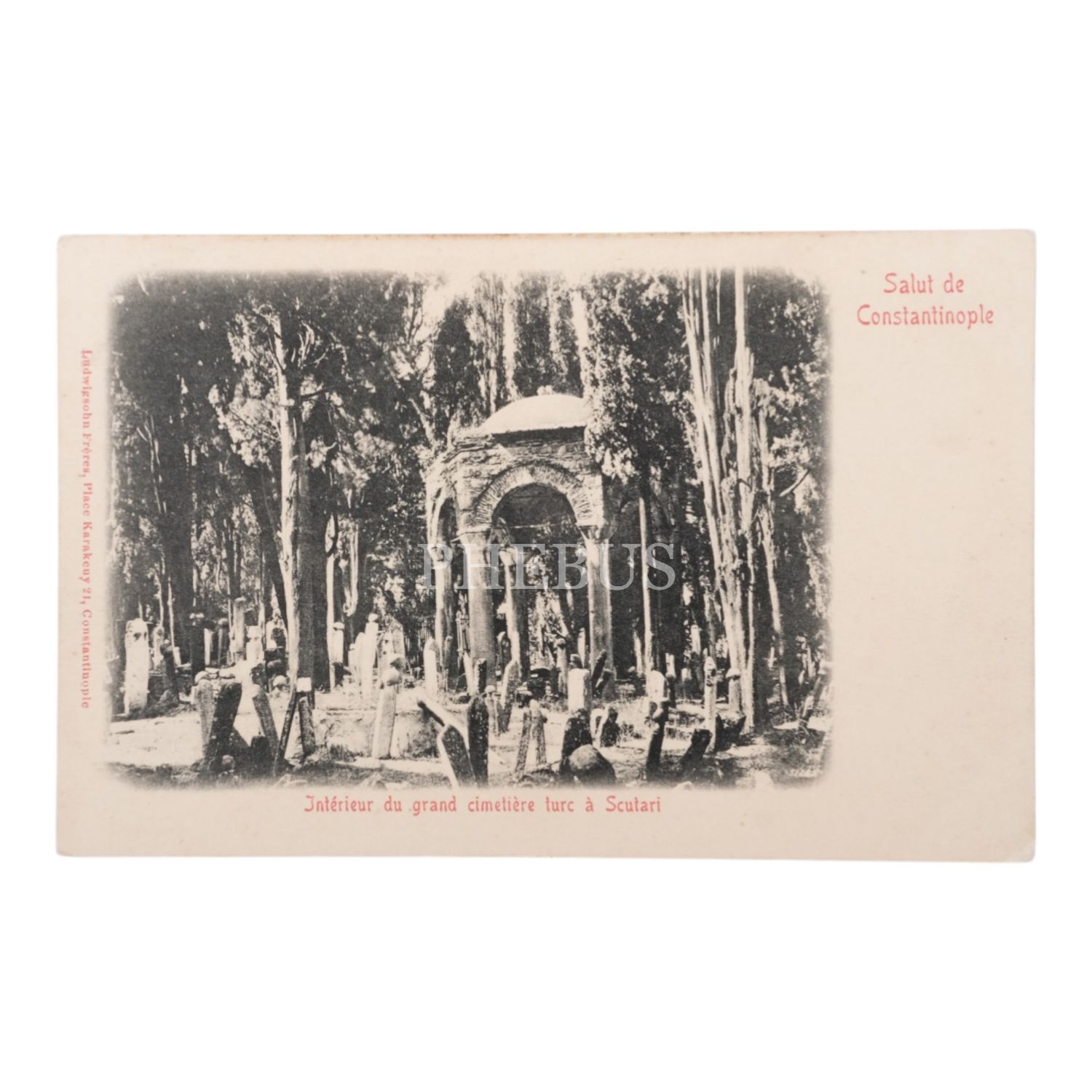 Üsküdar, Karacaahmet Mezarlığı, "Interieur du grand cimetiere turc a Scutari - Salut de Constantinople", ed. Ludwigsohn Freres, Place Karakeuy 21, Constantinople, 14x9 cm...