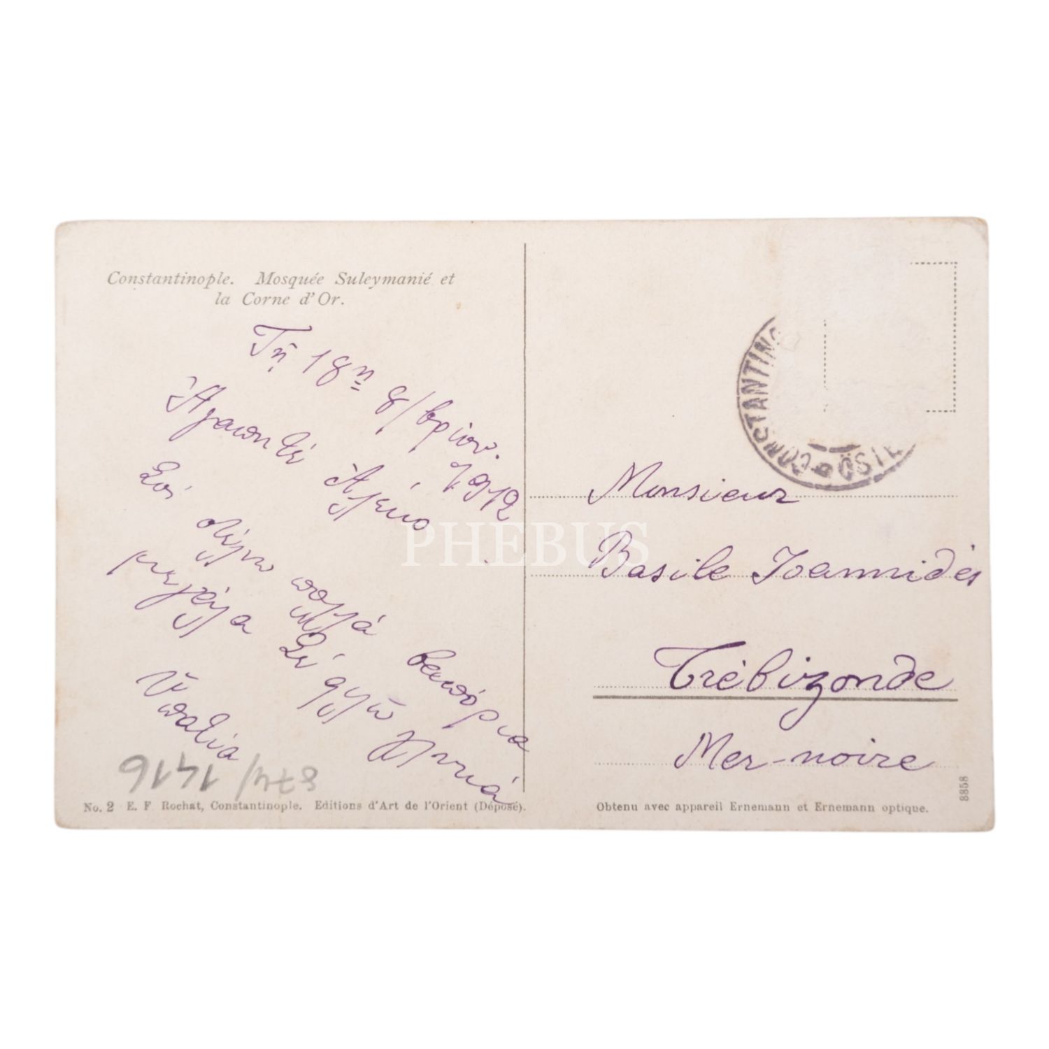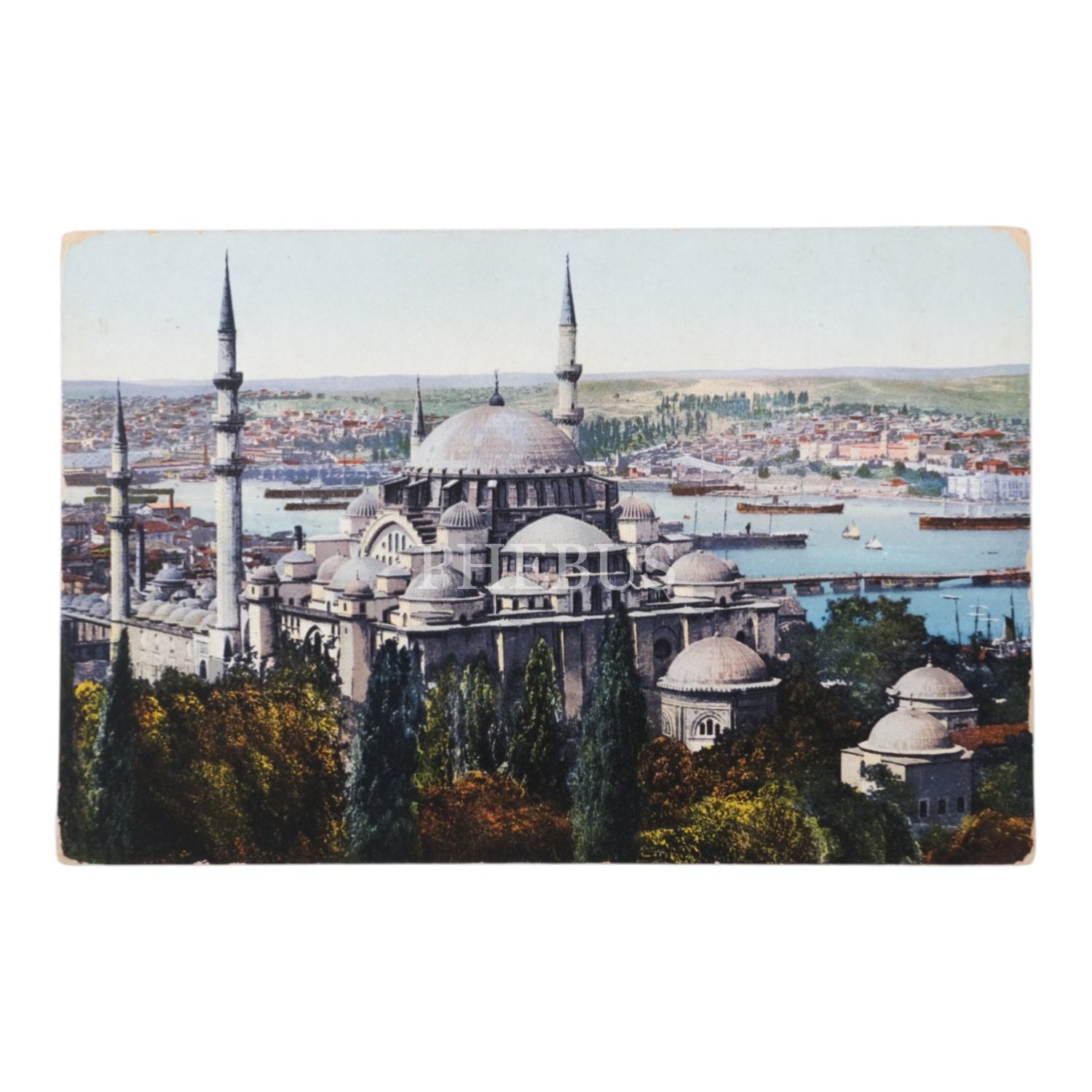 Süleymaniye Camii ve Haliç, "Mosquee Suleymanie et la Corne d´Or - Constantinople", ed. E. F. Rochat, Constantinople, 14x9 cm...