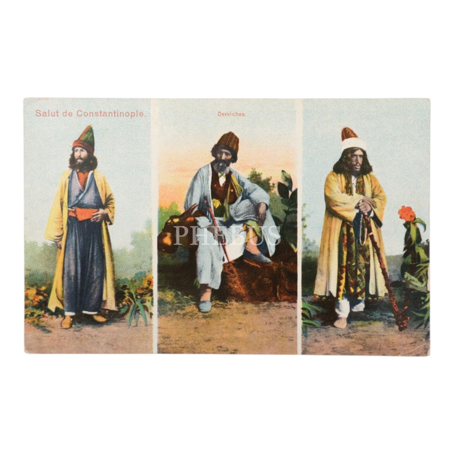 Dervişler görselli parçalı kartpostal, "Derviches - Salut de Constantinople", 14x9 cm...