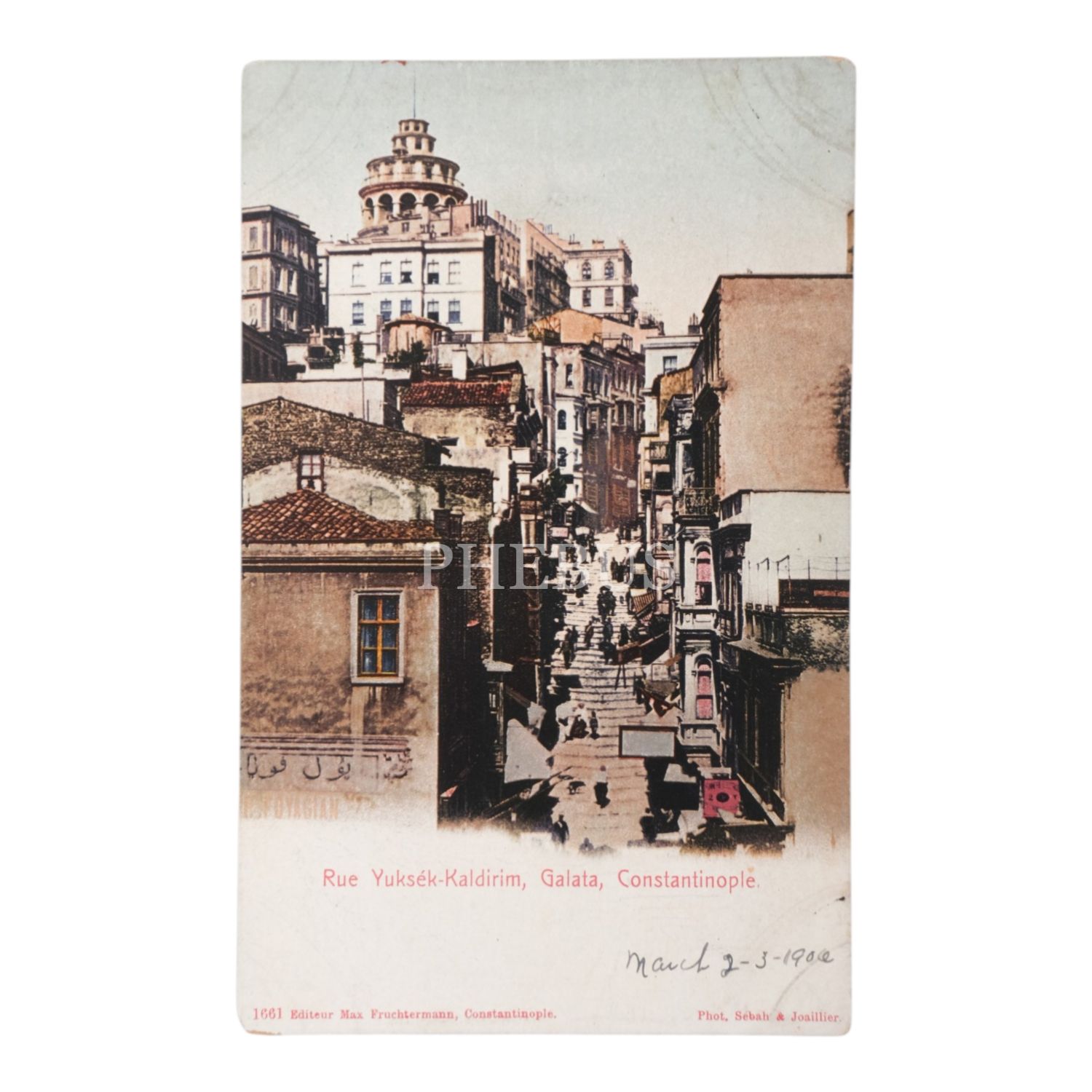 Galata, Yüksekkaldırım, "Rue Yuksek-Kaldirim, Galata - Constantinople", ed. Max Fruchtermann, Constantinople, phot. Sebah&Joaillier, 9x14 cm...