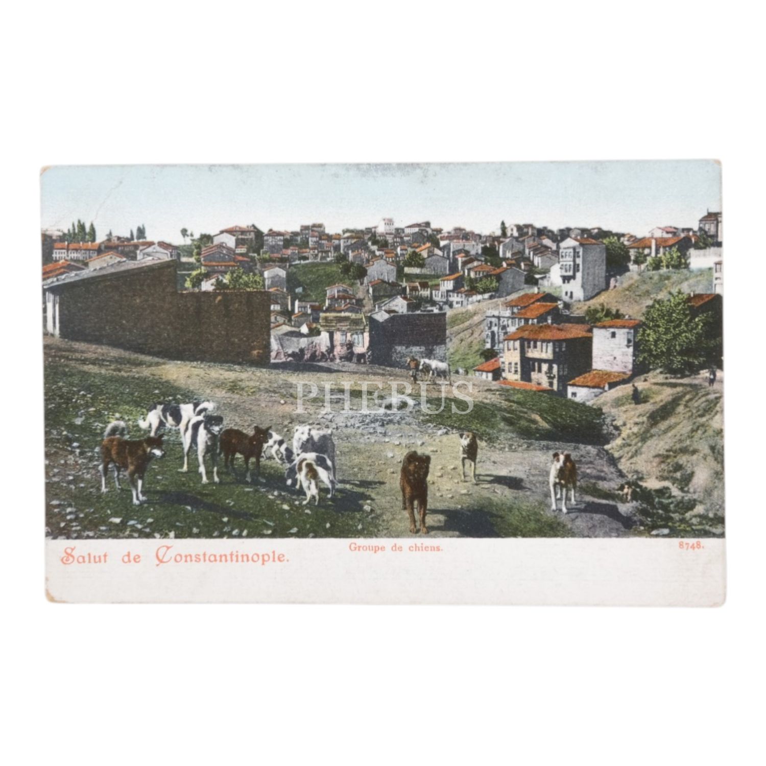 İstanbul´da sokak köpekleri, "Groupe de chiens - Salut de Constantinople", 14x9 cm...