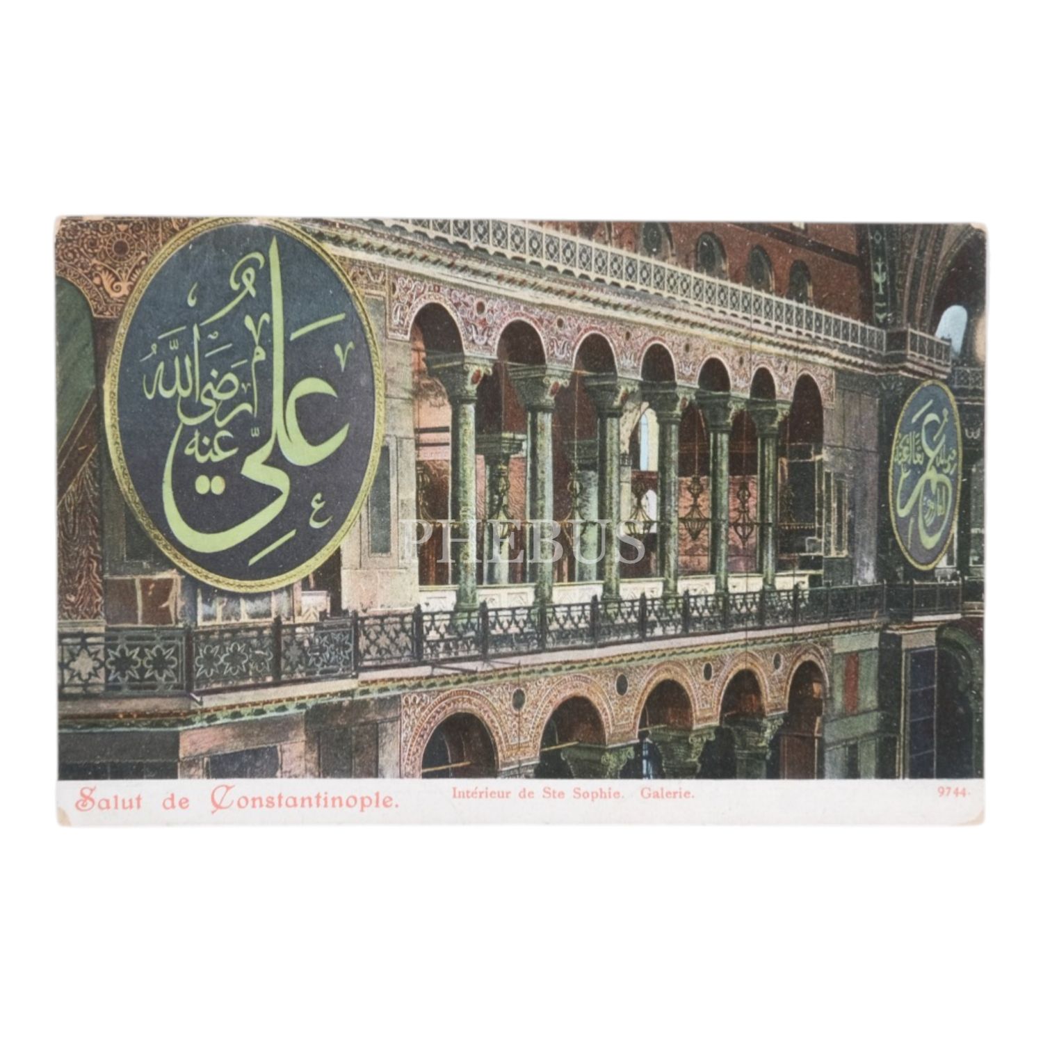 Ayasofya Camii´nin içi, "Vue interieure de St. Sophie Galerie - Salut de Constantinople", 14x9 cm...
