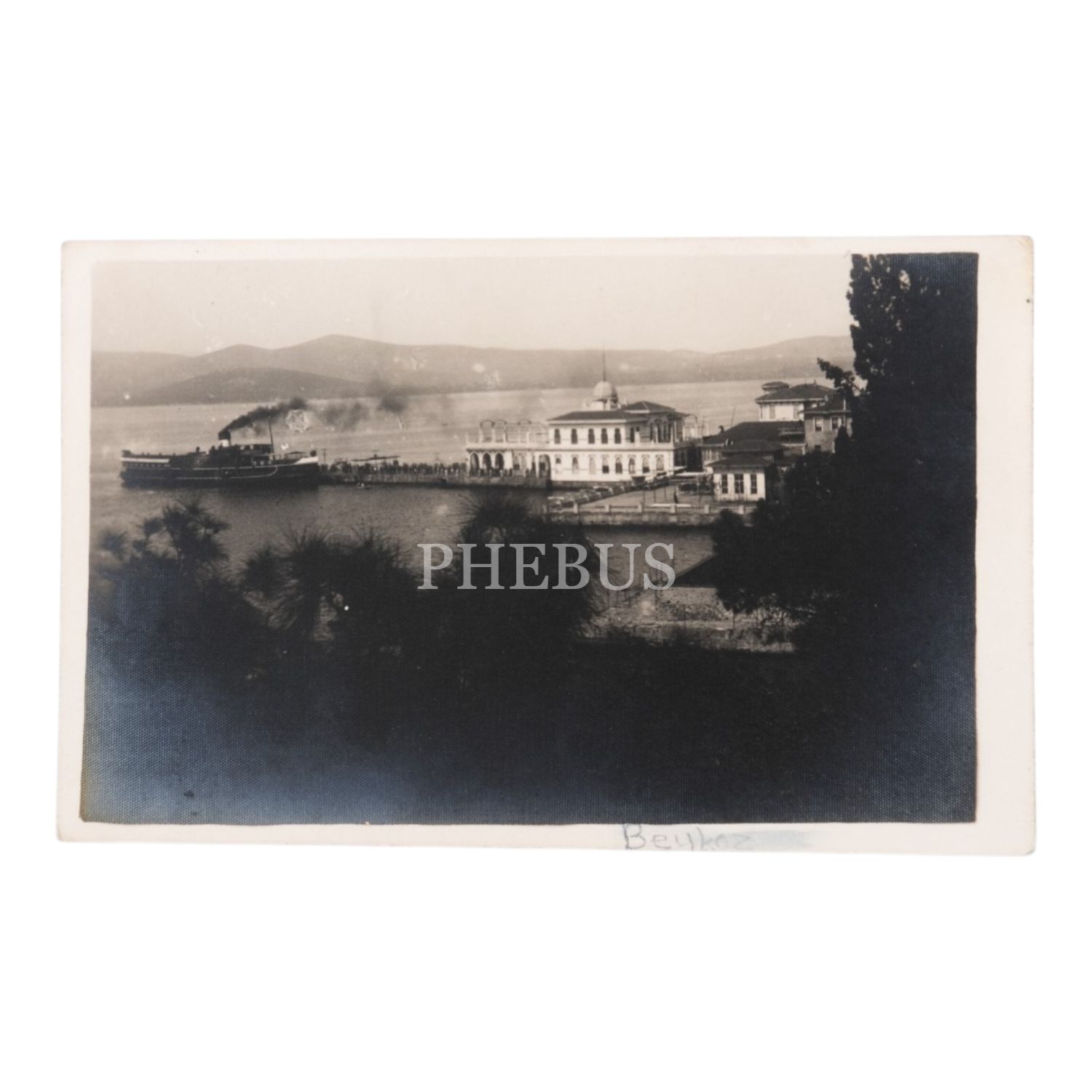 Beykoz İskelesi ve iskeleye yanaşan bir vapur, 14x9 cm...