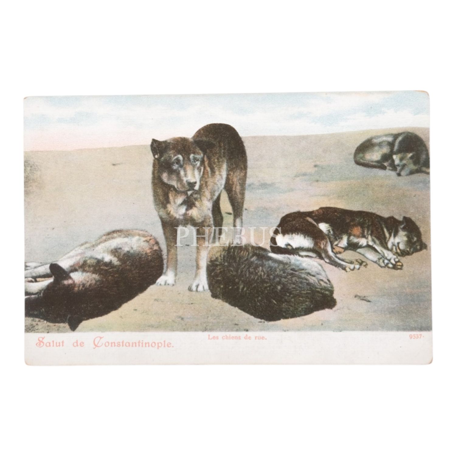 İstanbul´da sokak köpekleri, "Les chiens de rue - Salut de Constantinople", 14x9 cm...