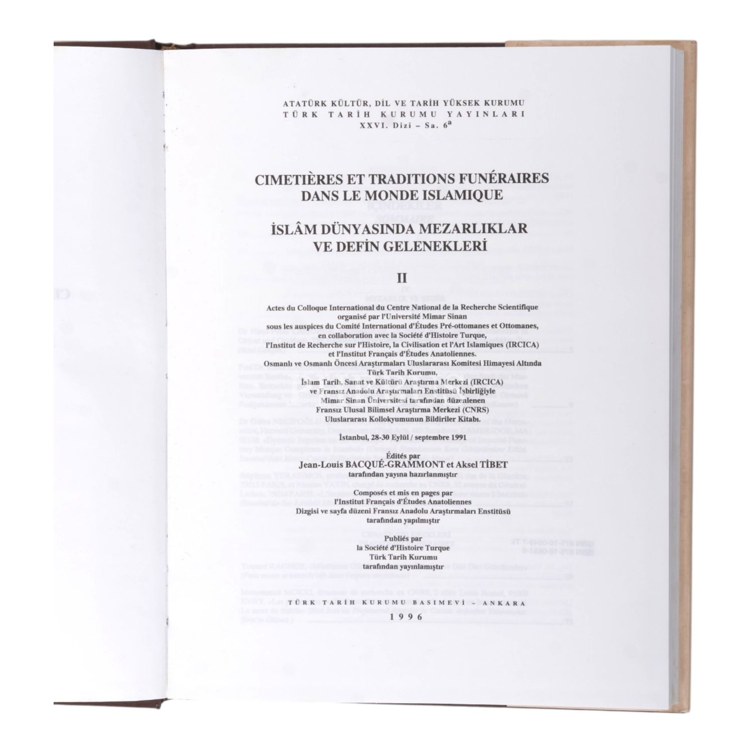 CIMETIERES et TRADITIONS FUNERAIRES dans le MONDE ISLAMIQUE - İSLAM DÜNYASINDA MEZARLIKLAR ve DEFİN GELENEĞİ, 2 cilt, 1996, Türk Tarih Kurumu Basımevi, 385+265 sayfa, 24x30 cm...