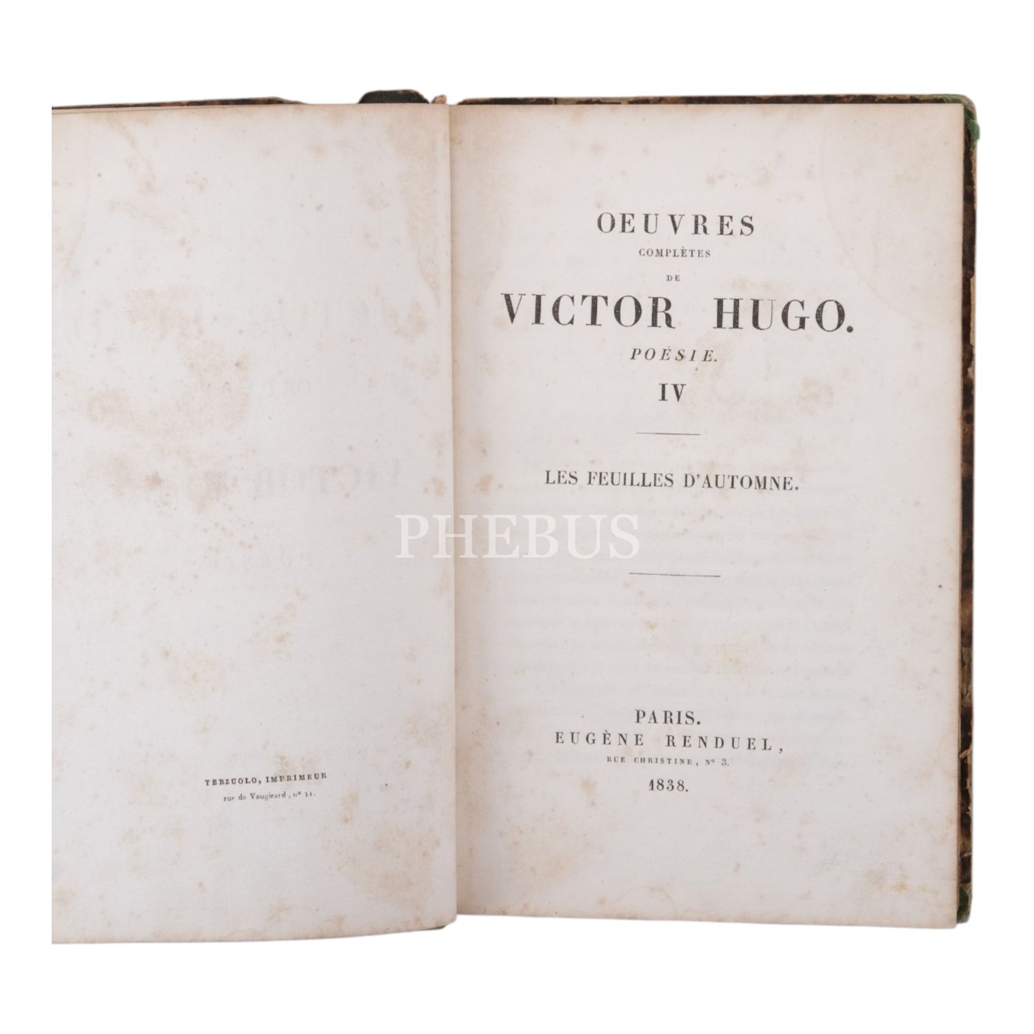 LES FEUILLES D´AUTOMNE (OEUVRES COMPLETES de VICTOR HUGO. POESIE. IV), 1838, Eugene Renduel, Paris, 320 sayfa, 14x21 cm...