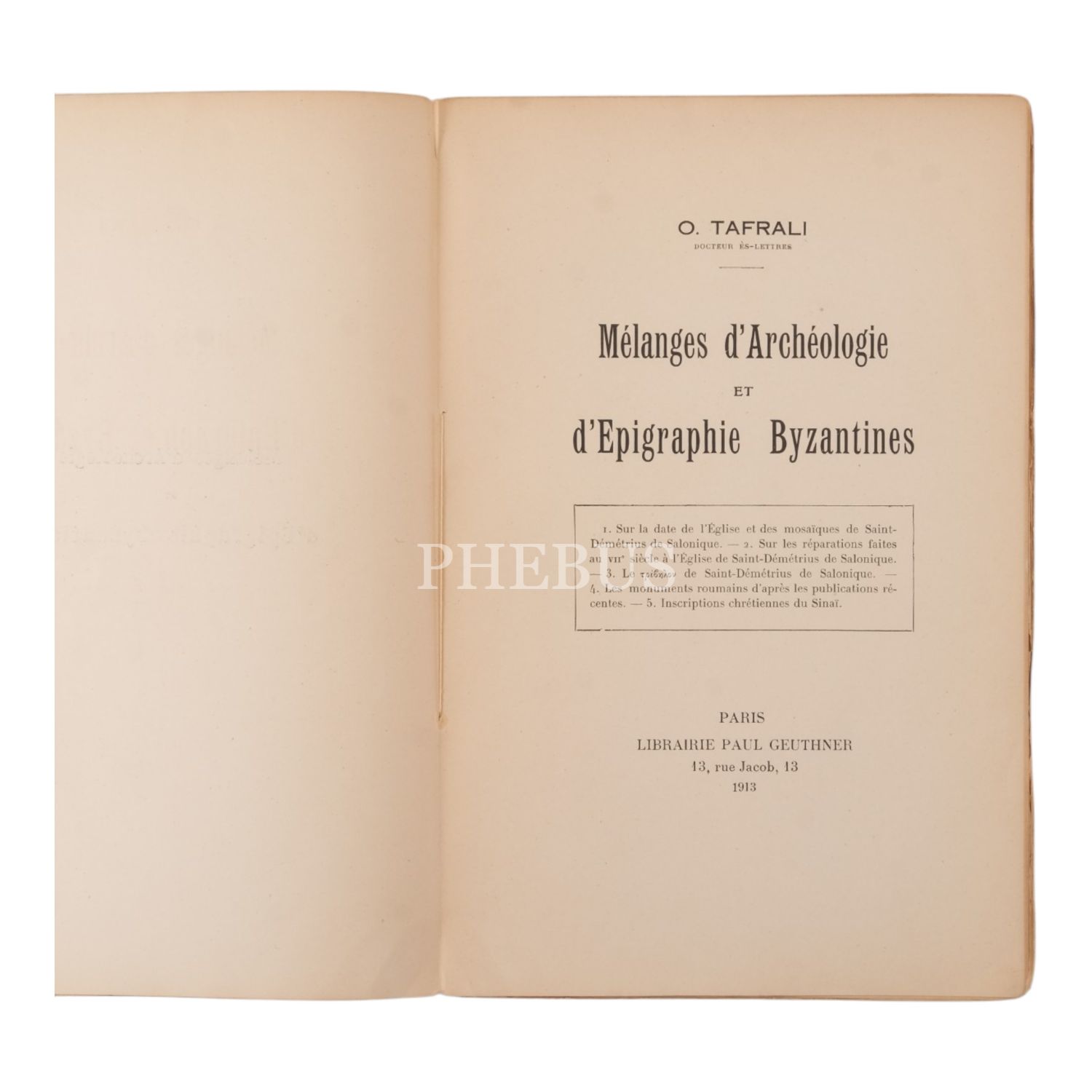 MELANGES D´ARCHEOLOGIE et D´EPIGHRAPHIE BYZANTINES, O. Tafrali, 1913, Librairie Paul Geuthner, 95 sayfa, 17x25 cm...