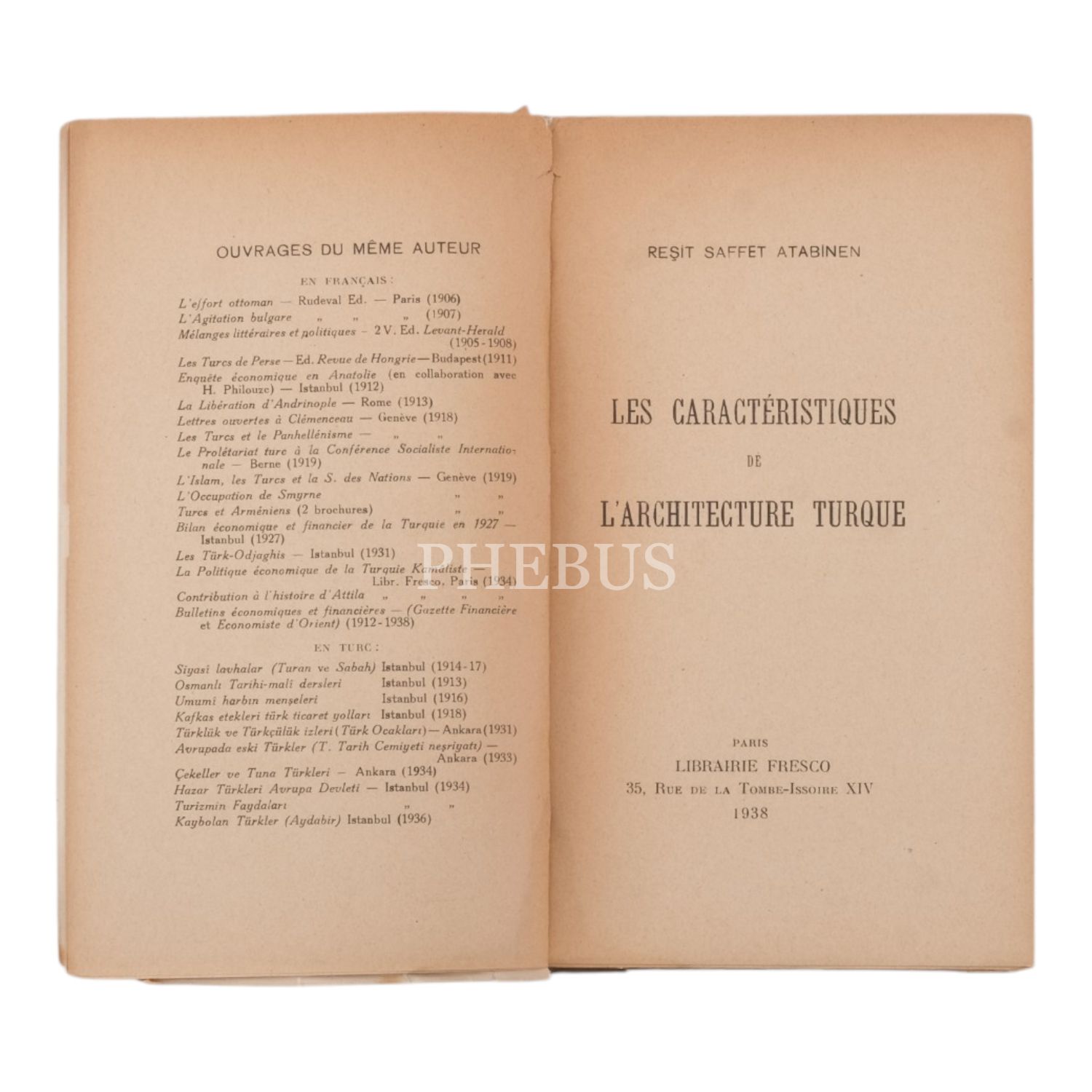 LES CHARACTERISTIQES de L´ARCHİTECTURE TURQUE, Reşit Saffet Atabinen, 1938, Librairie Fresco, 236 sayfa, 12x21 cm...