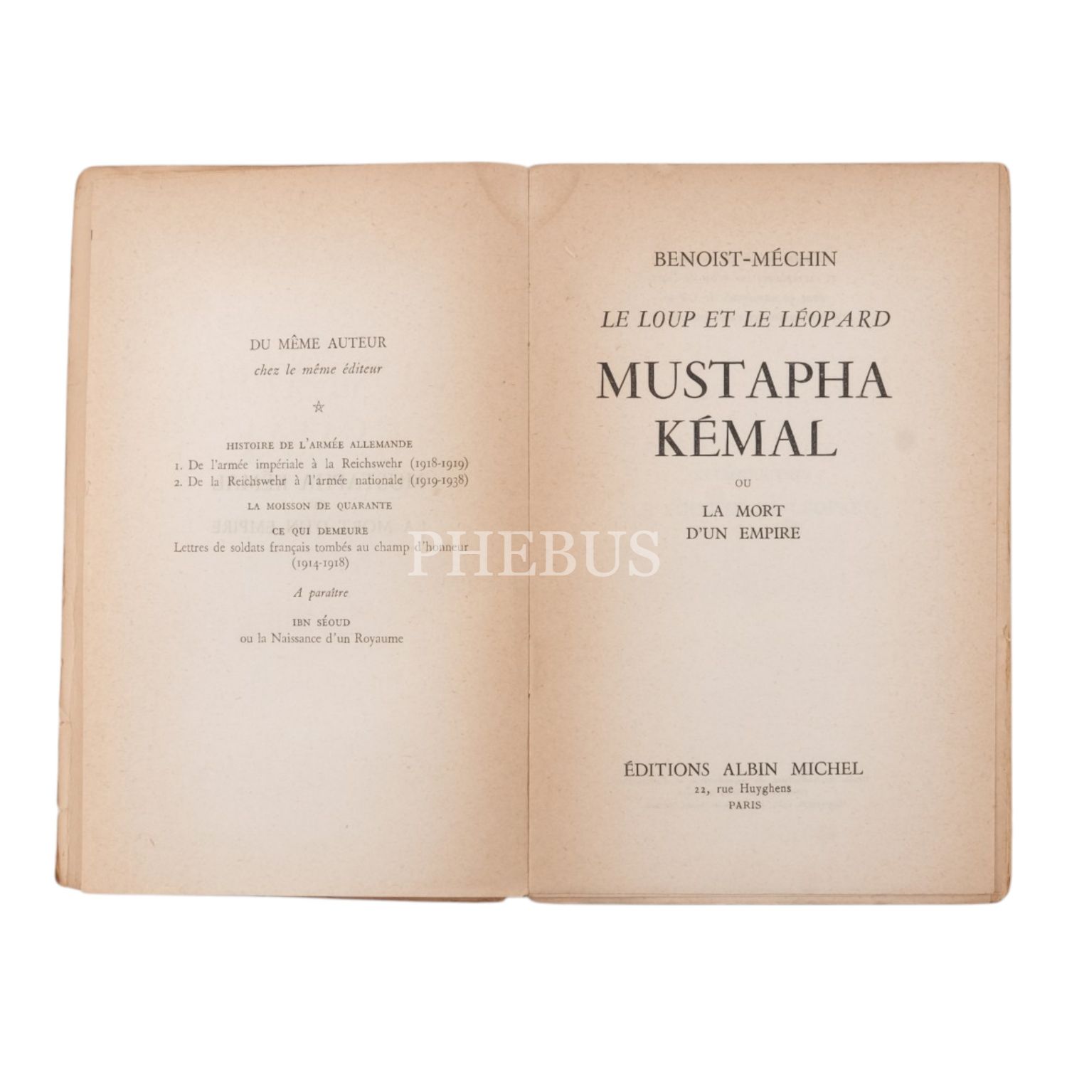 LE LOUP et LEOPARD: MUSTAPHA KEMAL ou la MORT d´un EMPIRE, Benoist-Mechin, 1954, Albin Michel, Paris, 438 sayfa, 13x20 cm...