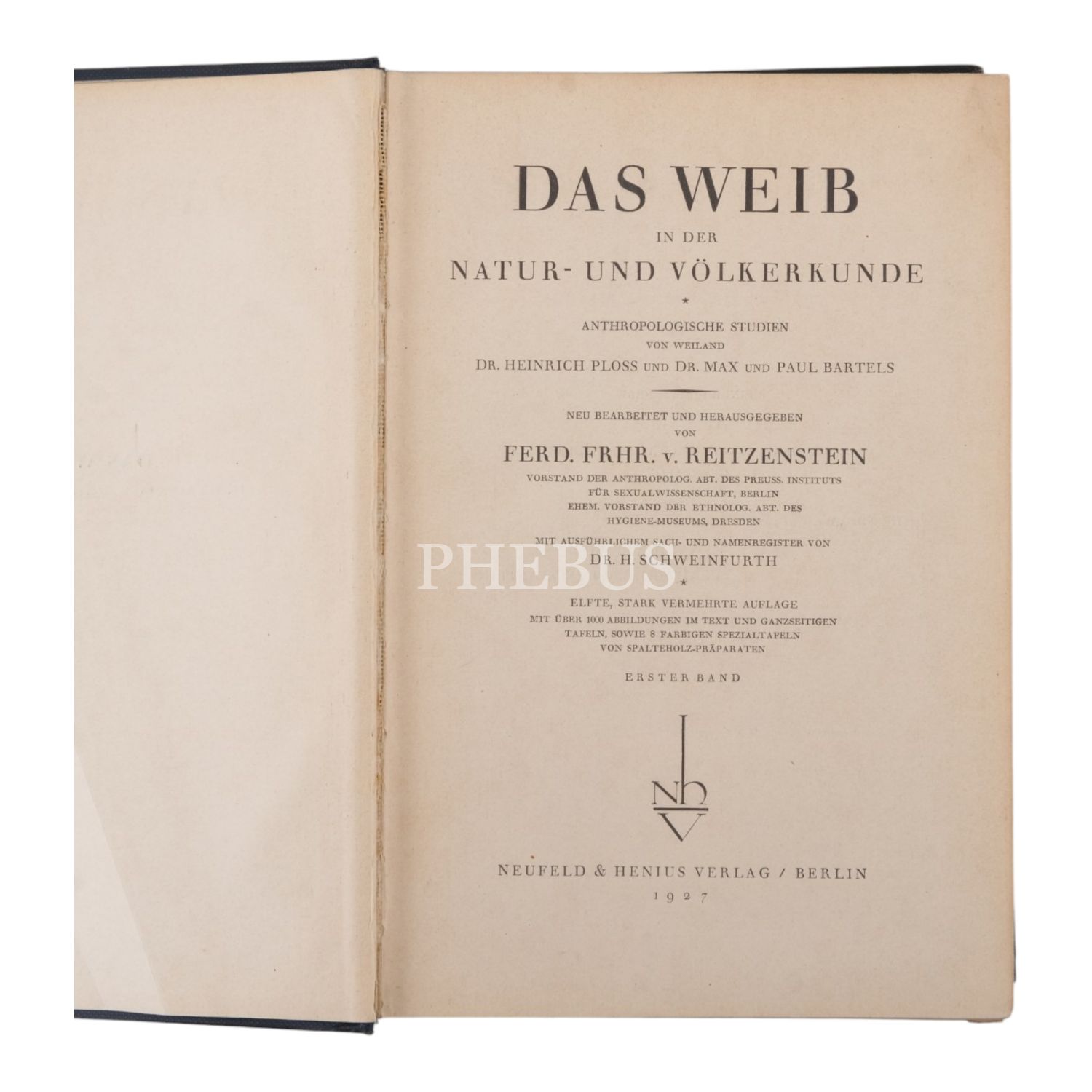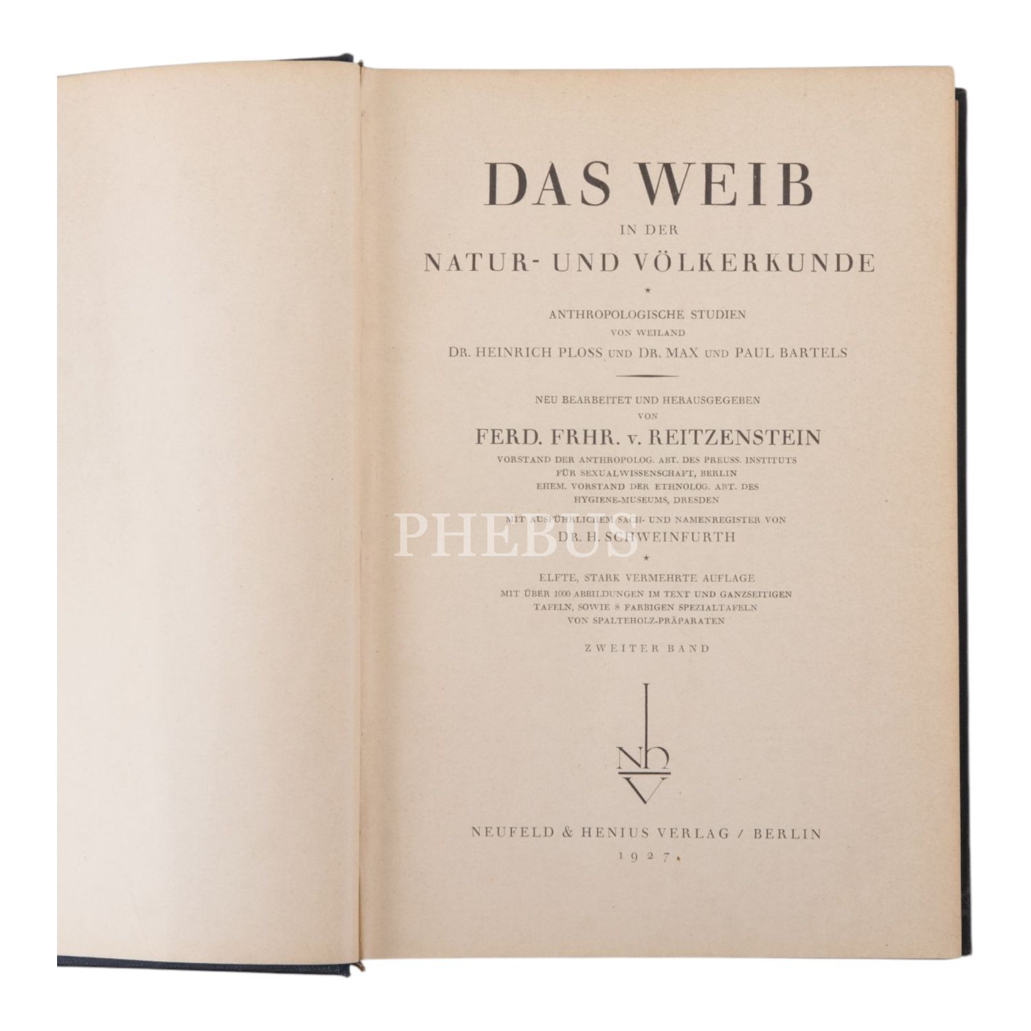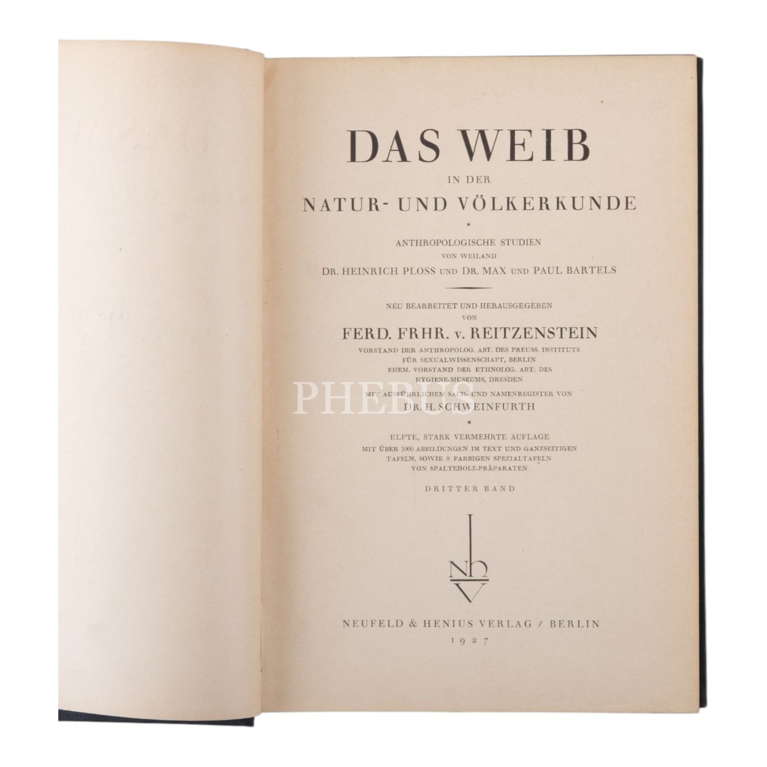 DAS WEIB IN DER NATUR - UND VÖLKERKUNDE, 3+1 cilt, Ploss-Max-Bartels, 1927, Neufeld & Henius Verlag, Berlin, 790+866+630 sayfa, 17x26 cm...