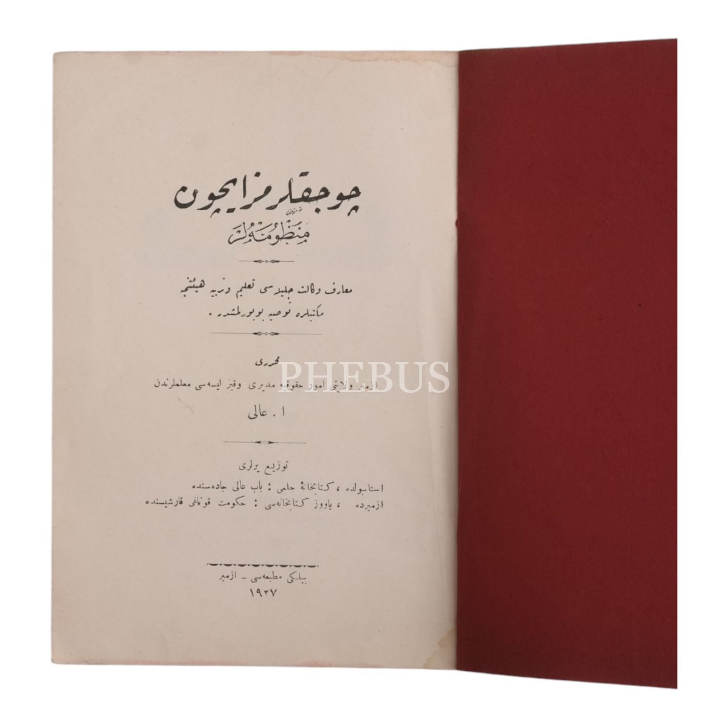 ÇOCUKLARIMIZ İÇİN MANZÛMELER, E. Ali, 1927, Bilgi Matbaası, 55 sayfa, 14x20 cm...
