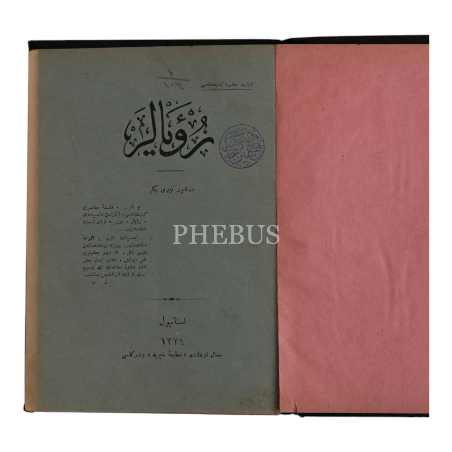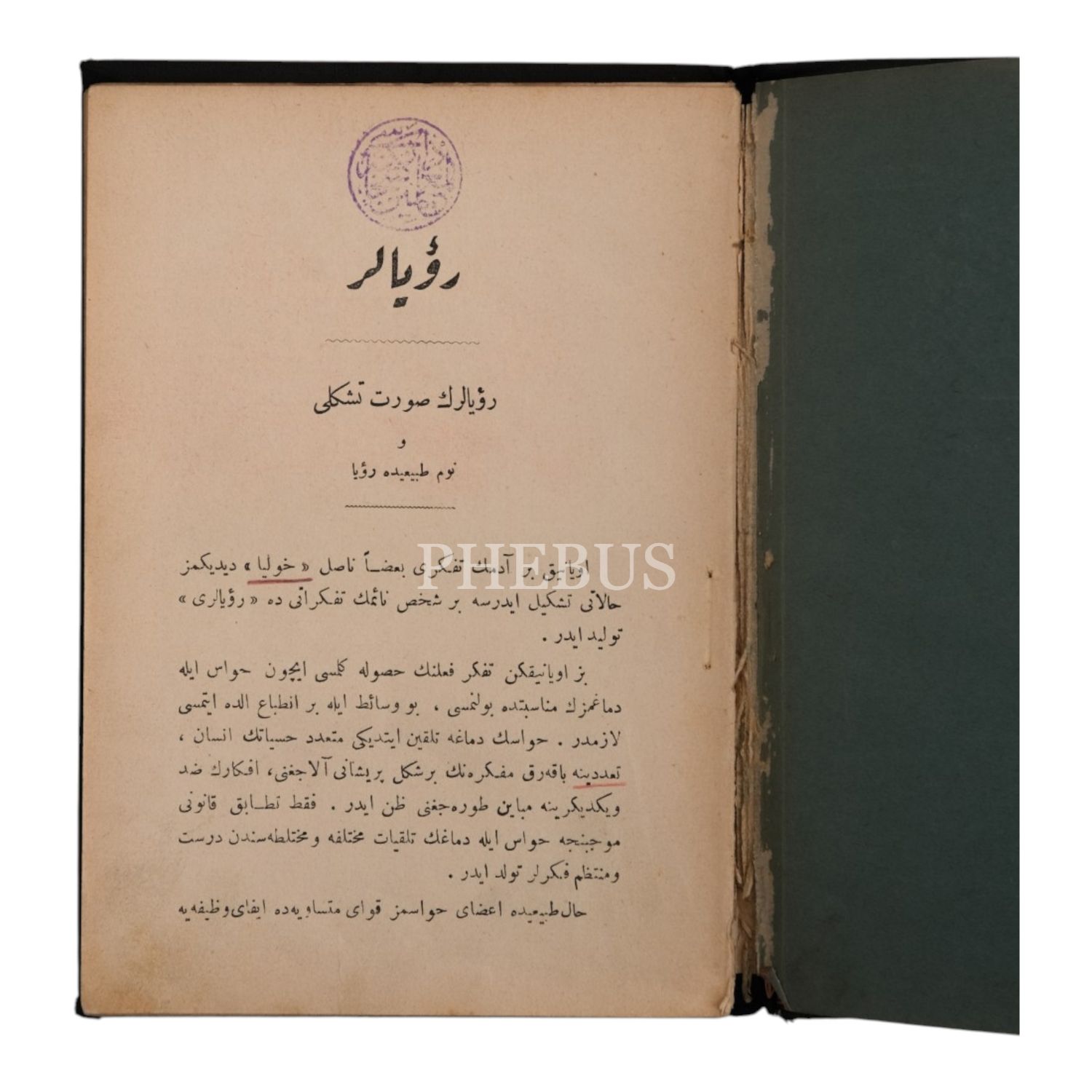 RÜYALAR, Dr. Nuri Bekir, 1326, Matbaa-i Hayriye, 68 sayfa, 13x19 cm...