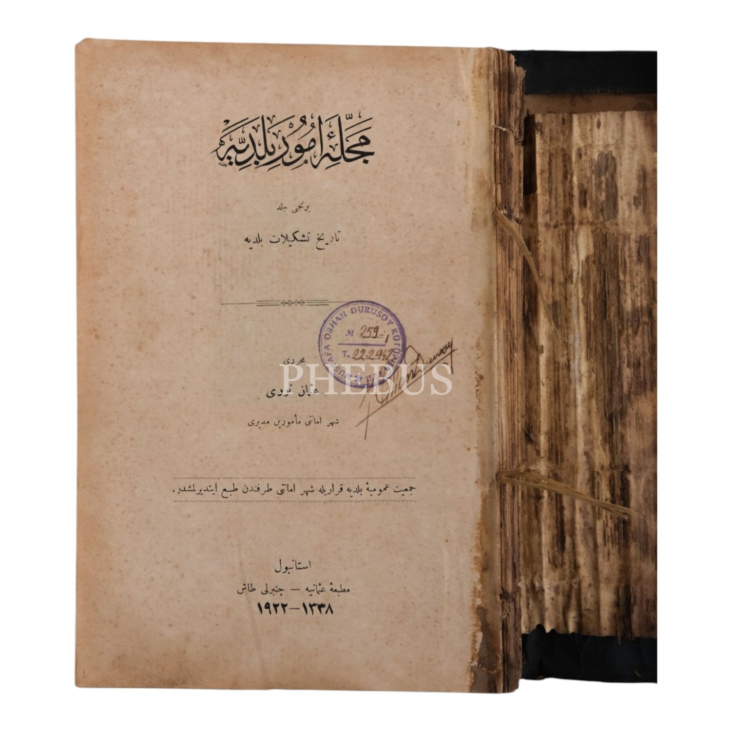 MECELLE-İ UMÛR-İ BELEDİYE, 1. cilt, Osman Nuri, 1922, Matbaa-i Osmâniye, 1776 sayfa, 16x25 cm...