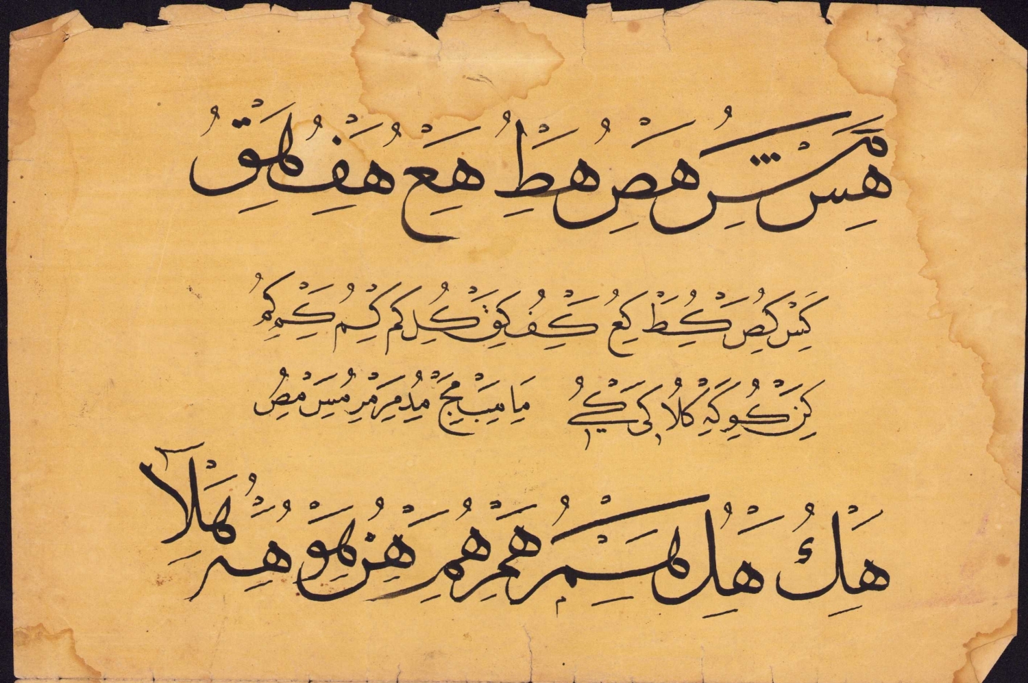 Sülüs Nesih Hurufat meşki, haliyle, 31,5x23,5 cm.