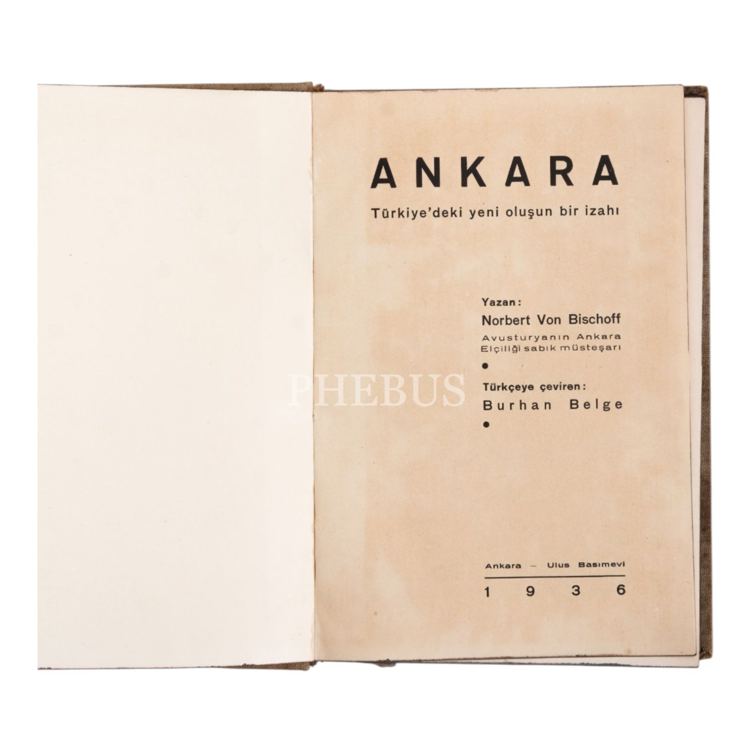 ANKARA: TÜRKİYE´DEKİ YENİ OLUŞUMUN BİR İZAHI, Norbert von Bischoff, çeviren: Burhan Belge, 1936, Ulus Basımevi, Ankara, 317 sayfa, 14x20 cm...
