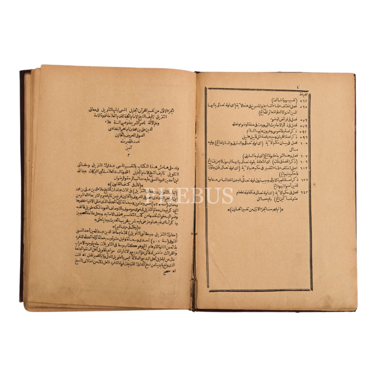 LÜBÂBÜ´T-TE´VÎL FÎ MAÂNİ´T-TENZÎL, 1. cilt, Hâzin İmam Ali b. Muhammed, kenarında MEDÂRİKÜ´T-TENZÎL VE HAKÂİKÜ´T-TE´VÎL, Ebü´l-Berekât Abdullah en-Nesefî, 670 sayfa, 18x27 cm...