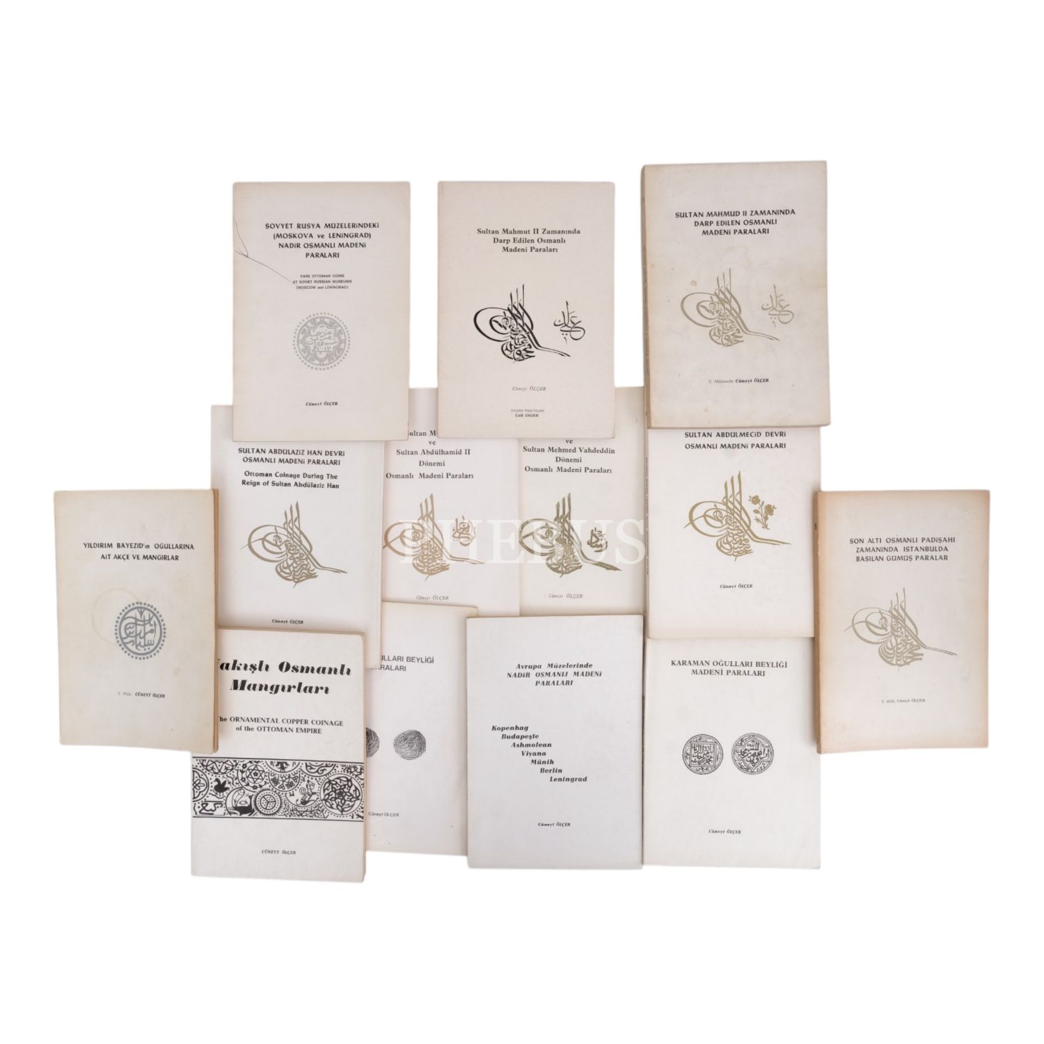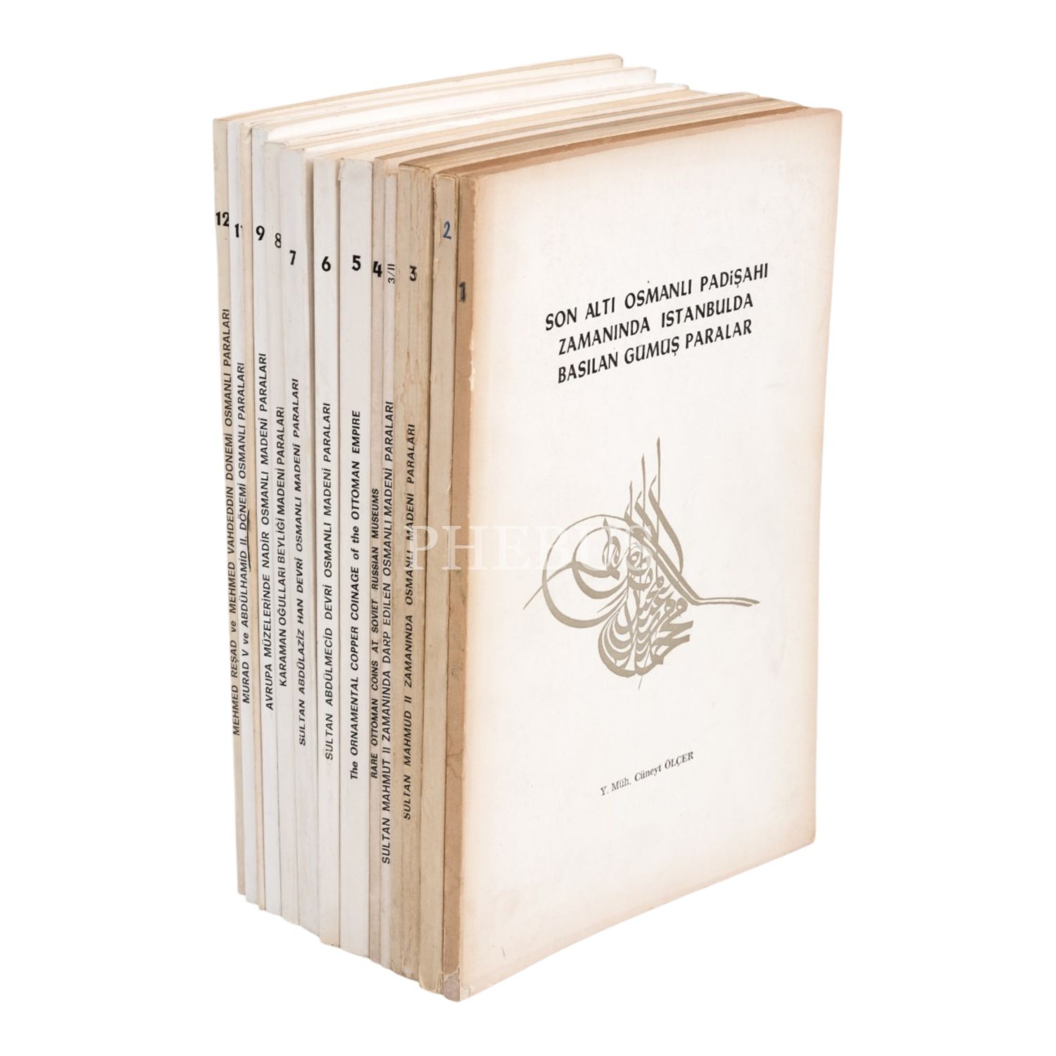 Türk nümismat ve yazar Cüneyt Ölçer´in kaleme aldığı Osmanlı madeni paraları konulu 13 kitaplık takım, 1966-1987, Yenilik Basımevi, 16x24 cm...