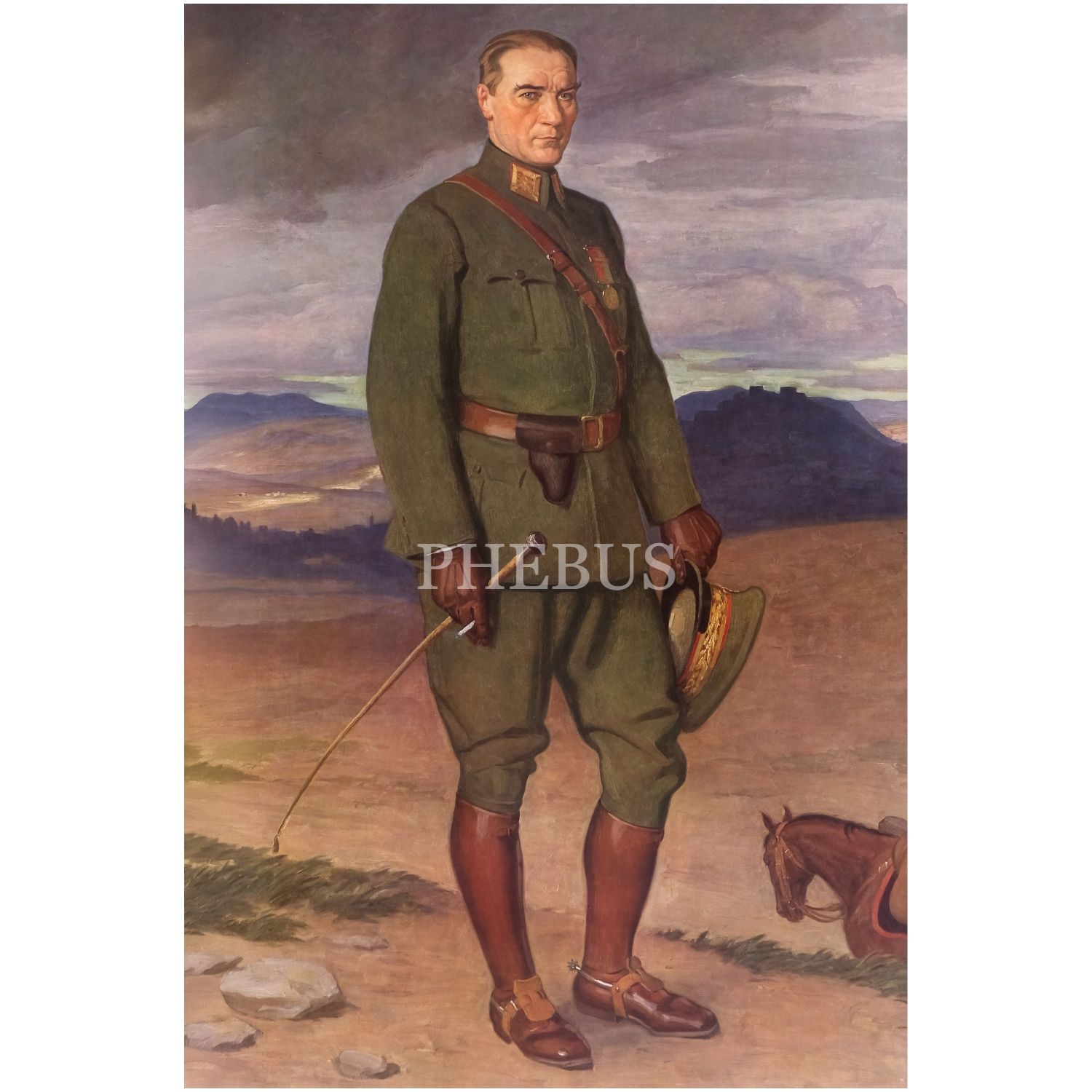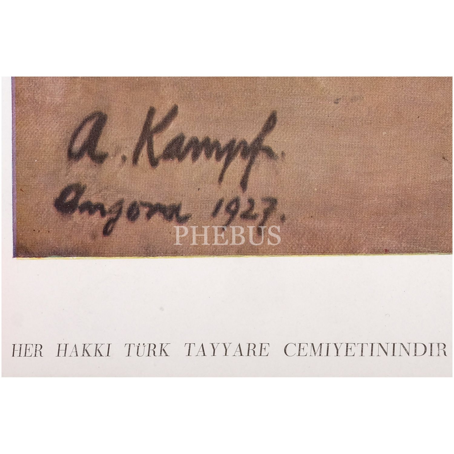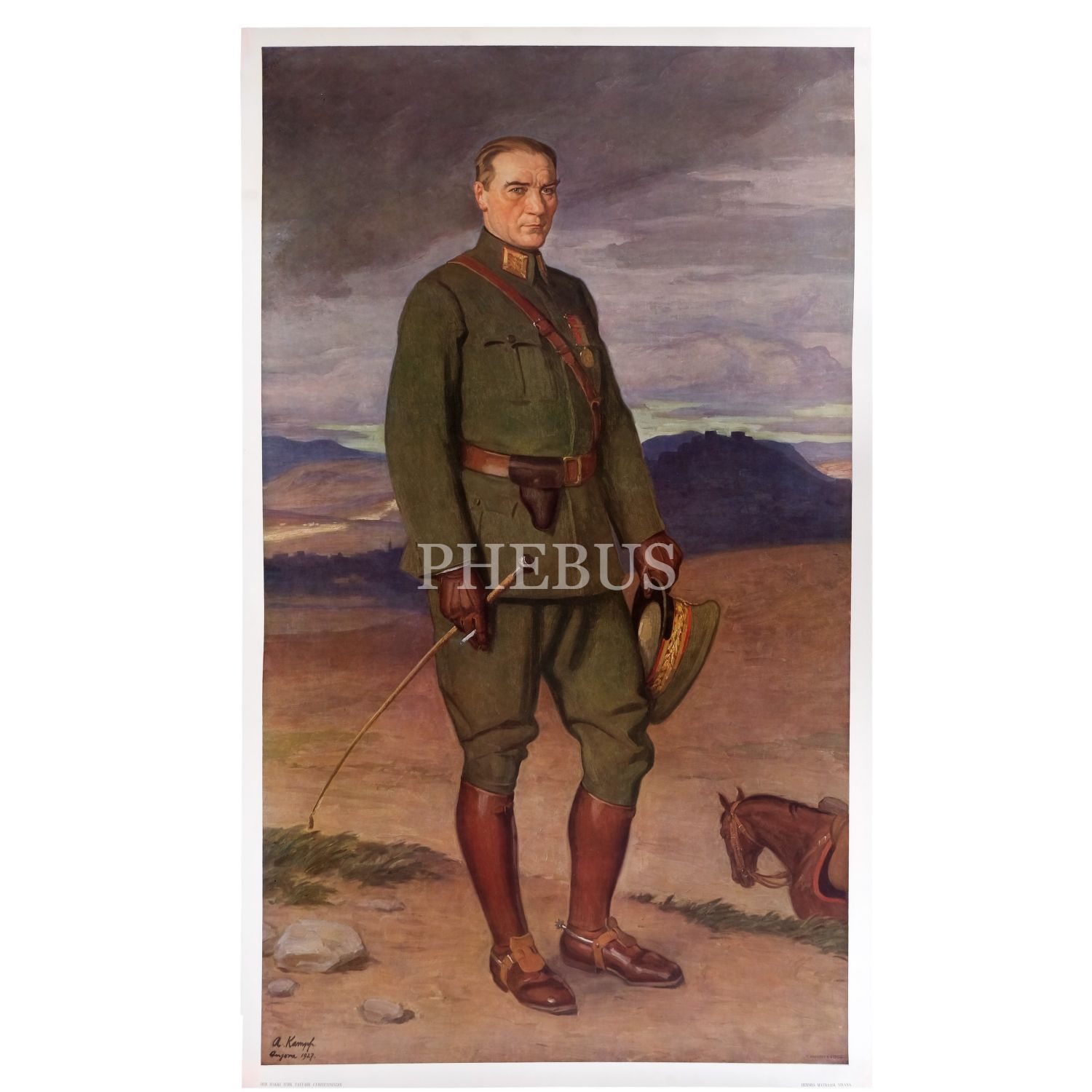 Mustafa Kemal Atatürk´ün, Alman ressam Arthur Kampf tarafından İstiklal Madalyalı ve üniformalı bir şekilde resmedildiği tablonun, Türk Tayyare Cemiyeti´ne bağış sağlamak için 1927 yılında Viyana Hermes Matbaası´nda basılmış afişi, 75,5x125 cm...