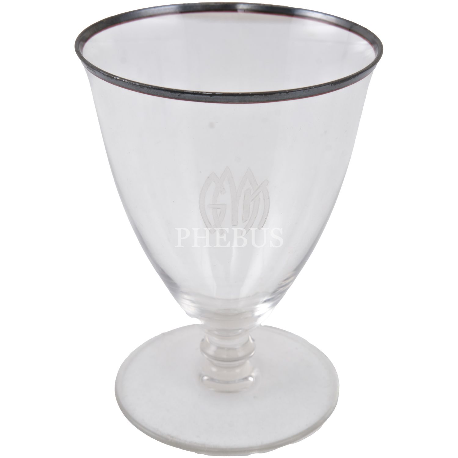 Gövdeleri "GMK" (Gazi Mustafa Kemal) gofre inisiyalli bir çift cam kadeh seti, 9x12 cm...