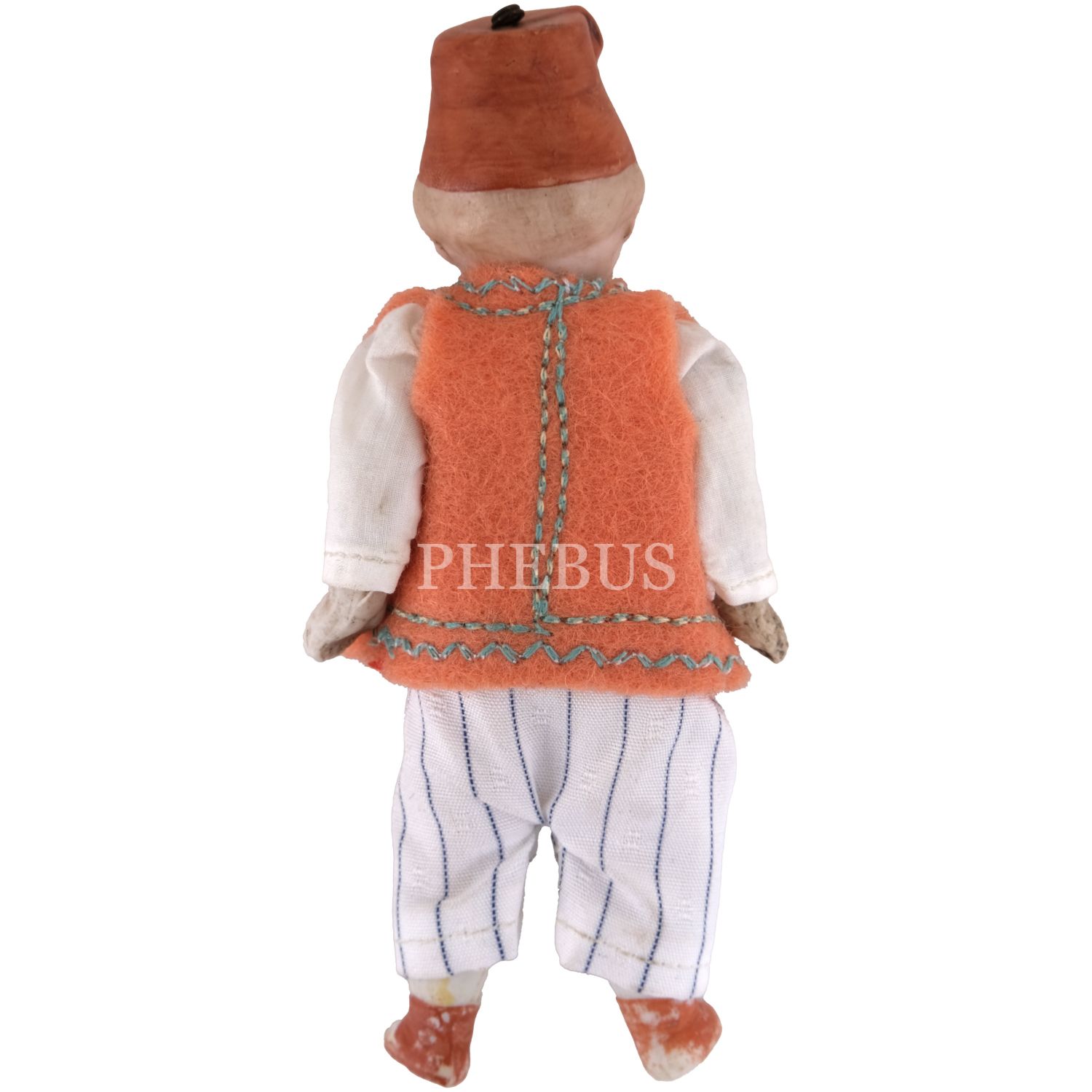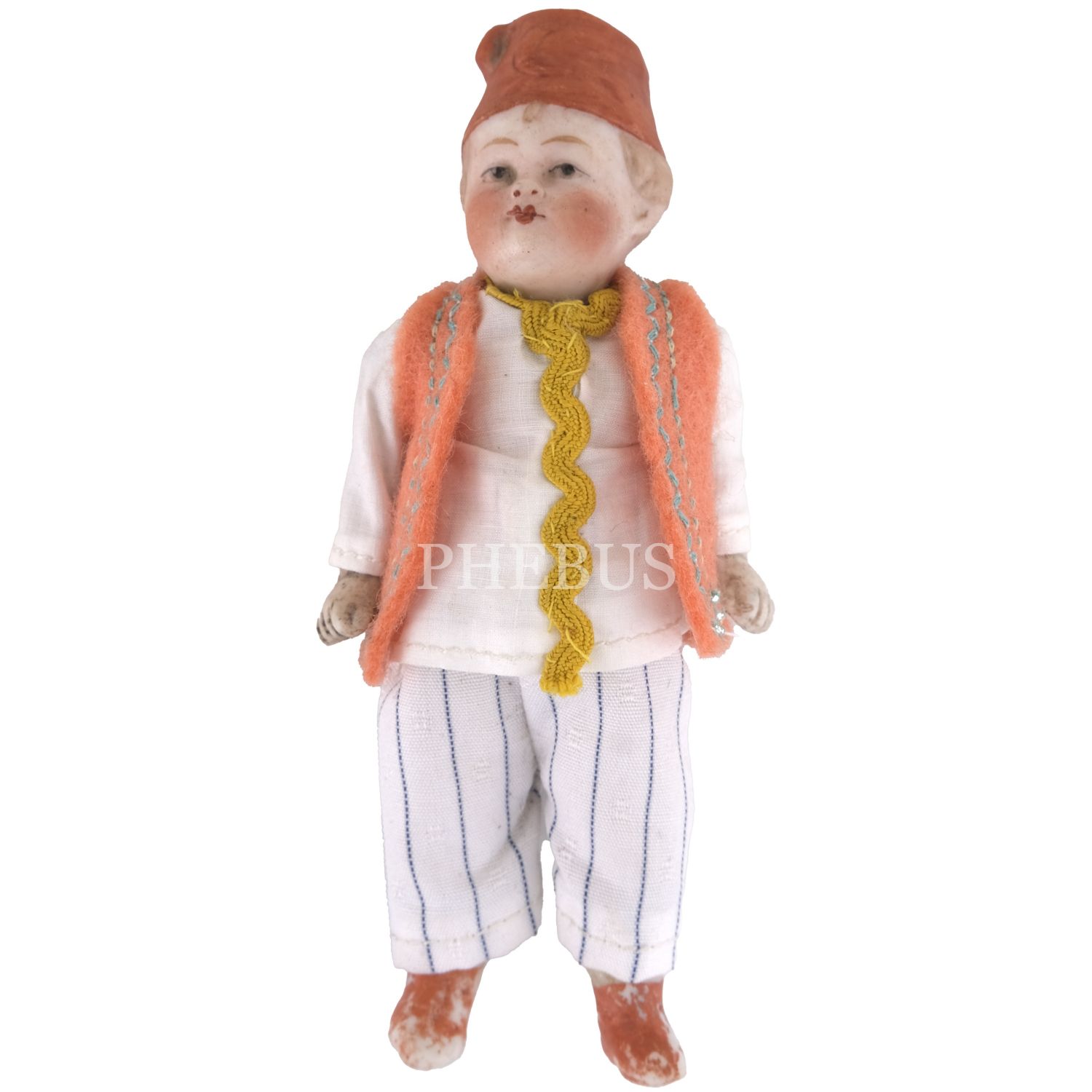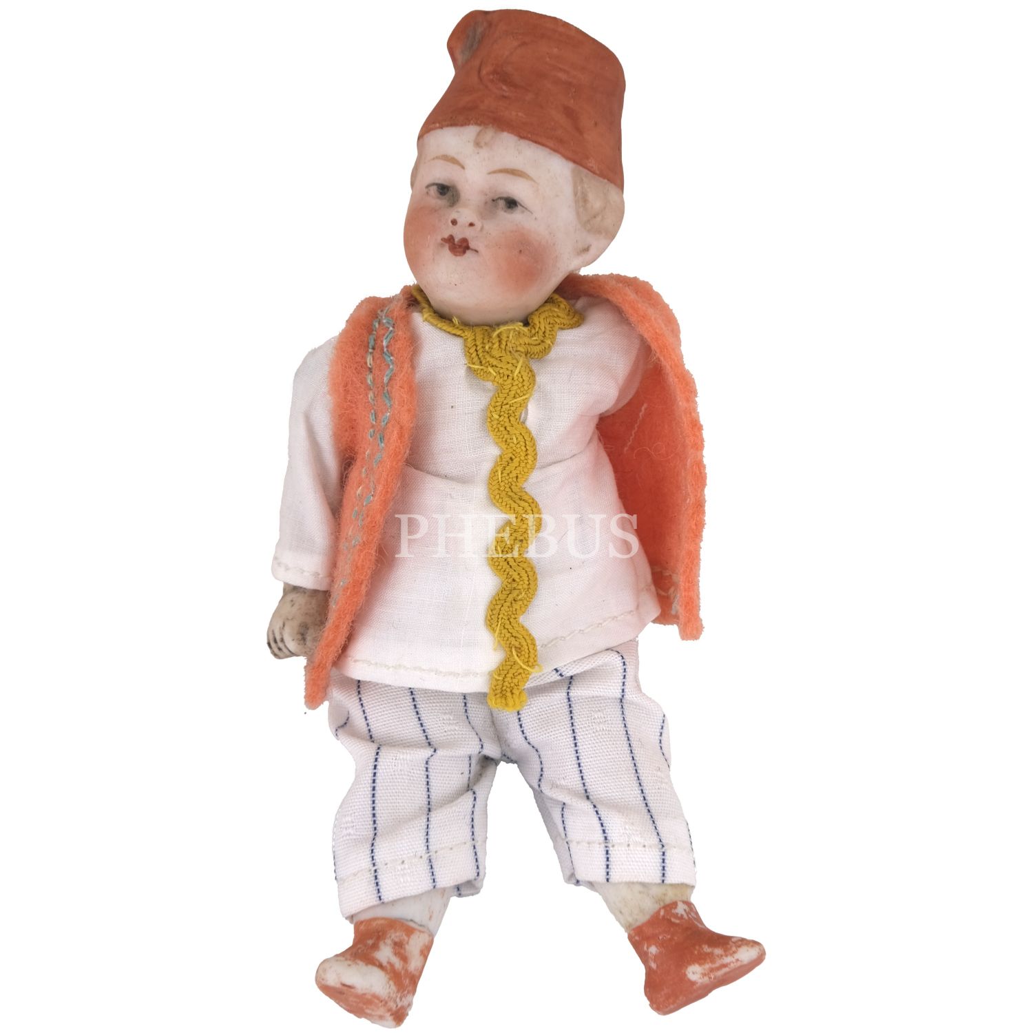 Osmanlı döneminden, Hilal-i Ahmer Cemiyeti (Kızılay) fesli ve giysili, bisküvi porselenden mamul oyuncak bebek, 10x4 cm...