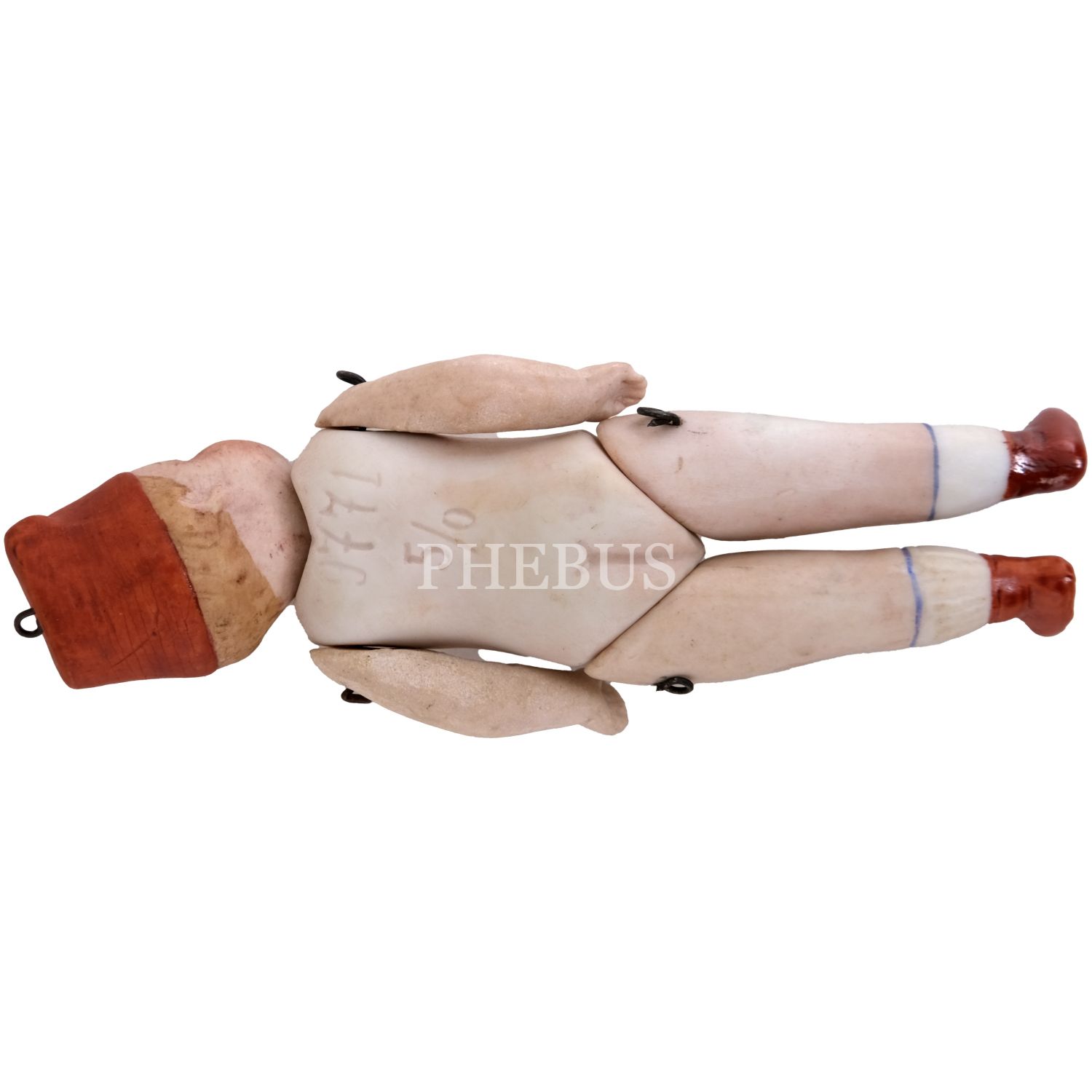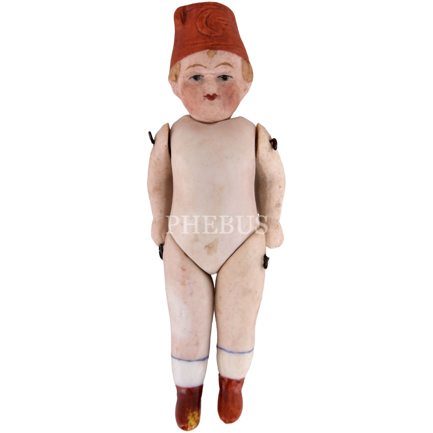 Osmanlı döneminden, Hilal-i Ahmer Cemiyeti (Kızılay) fesli, bisküvi porselenden mamul oyuncak bebek, 10x3 cm...
