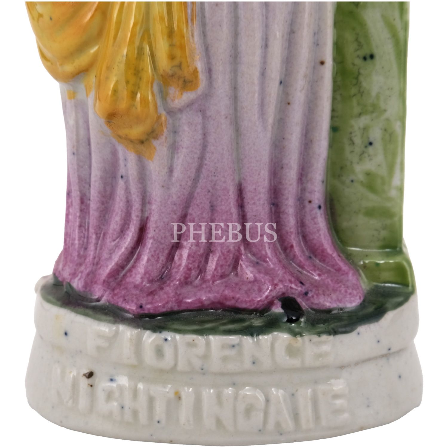 Kırım Savaşı esnasında, gece gündüz demeden yaralanan askerlerin tedavi ve bakımlarını yapan meşhur hemşire Florence Nightingale'in, Kırım Savaşı sonrası üretilmiş porselen biblosu, elle renklendirilmiş, "Florence Nightingale" kabartma yazılı, 17x6,5x5 cm...