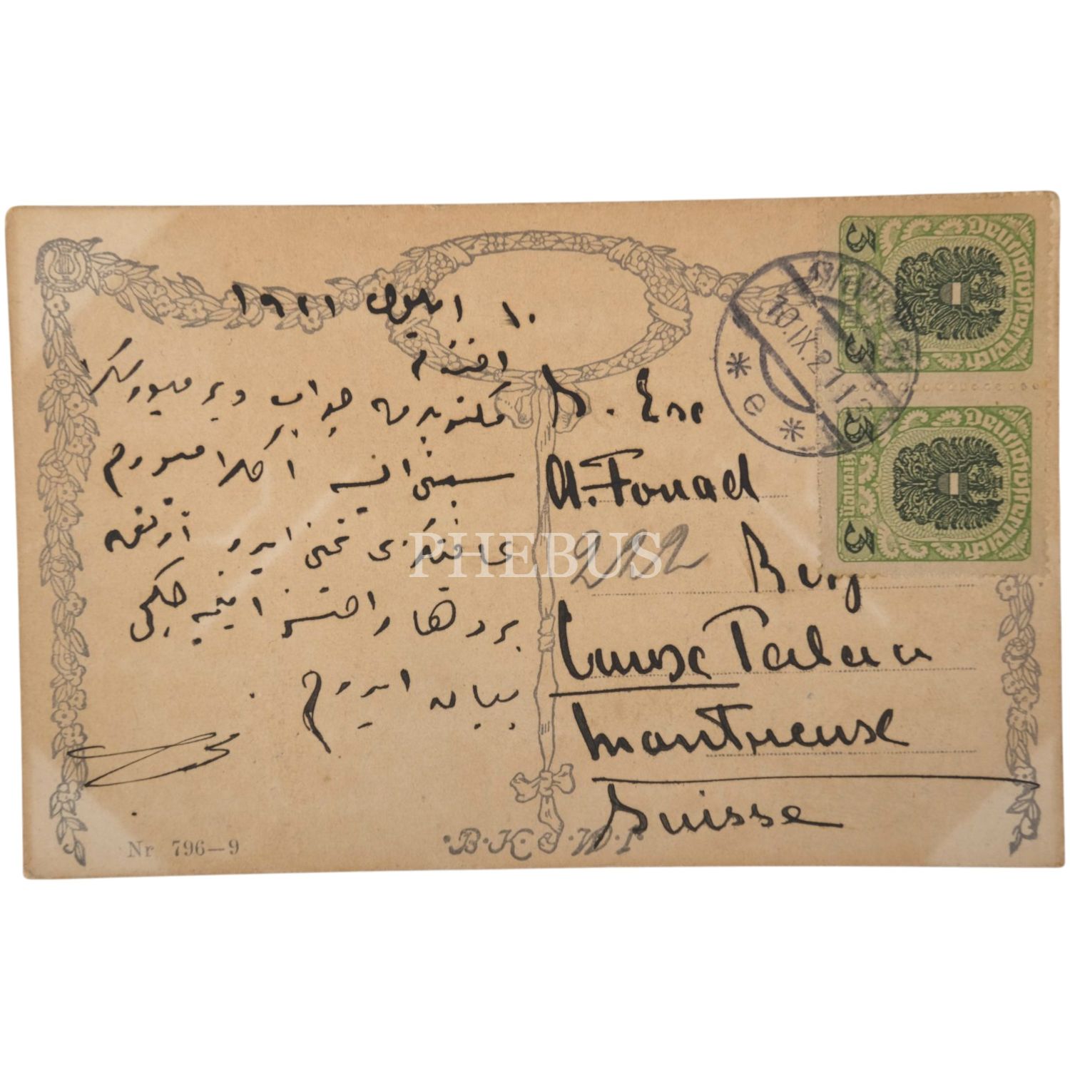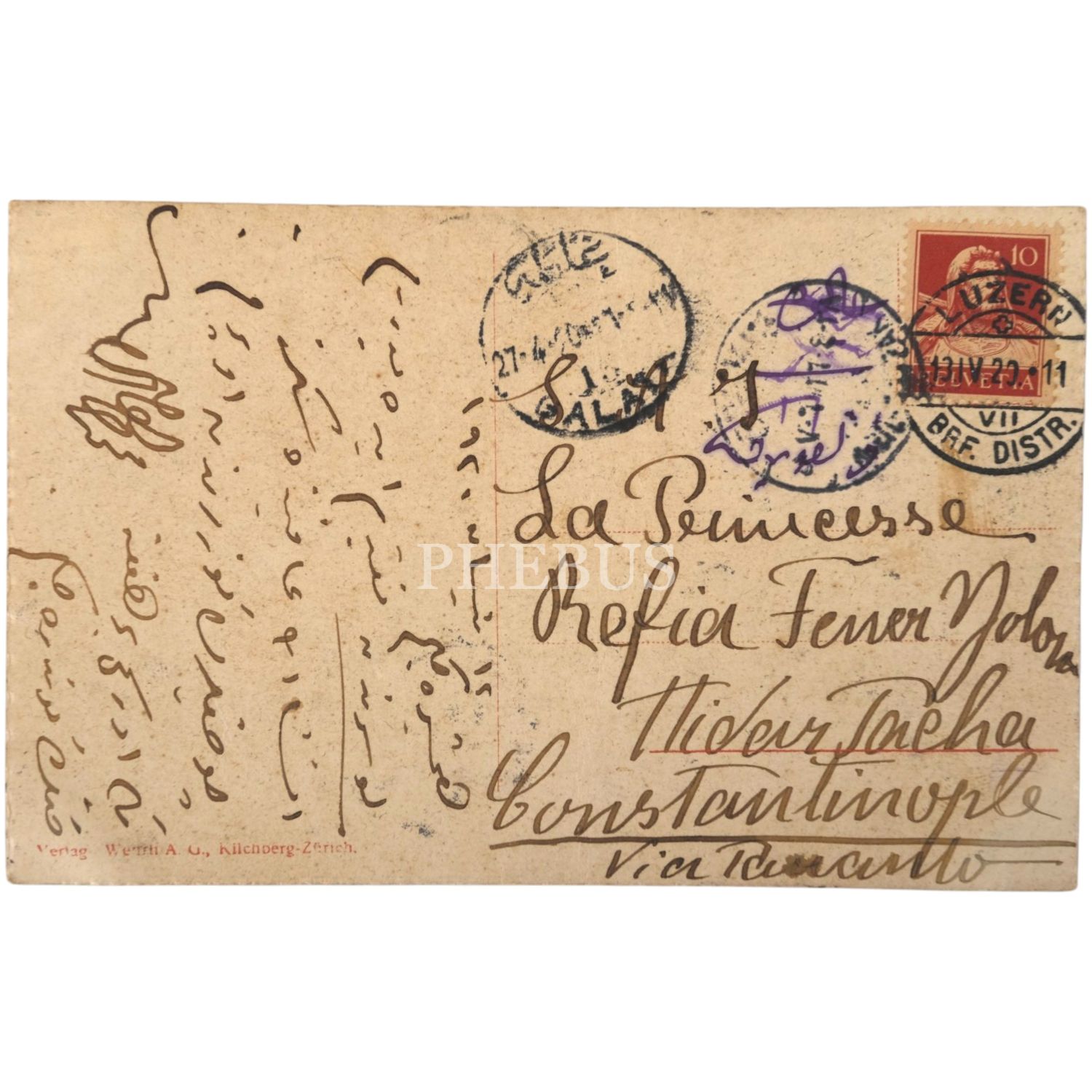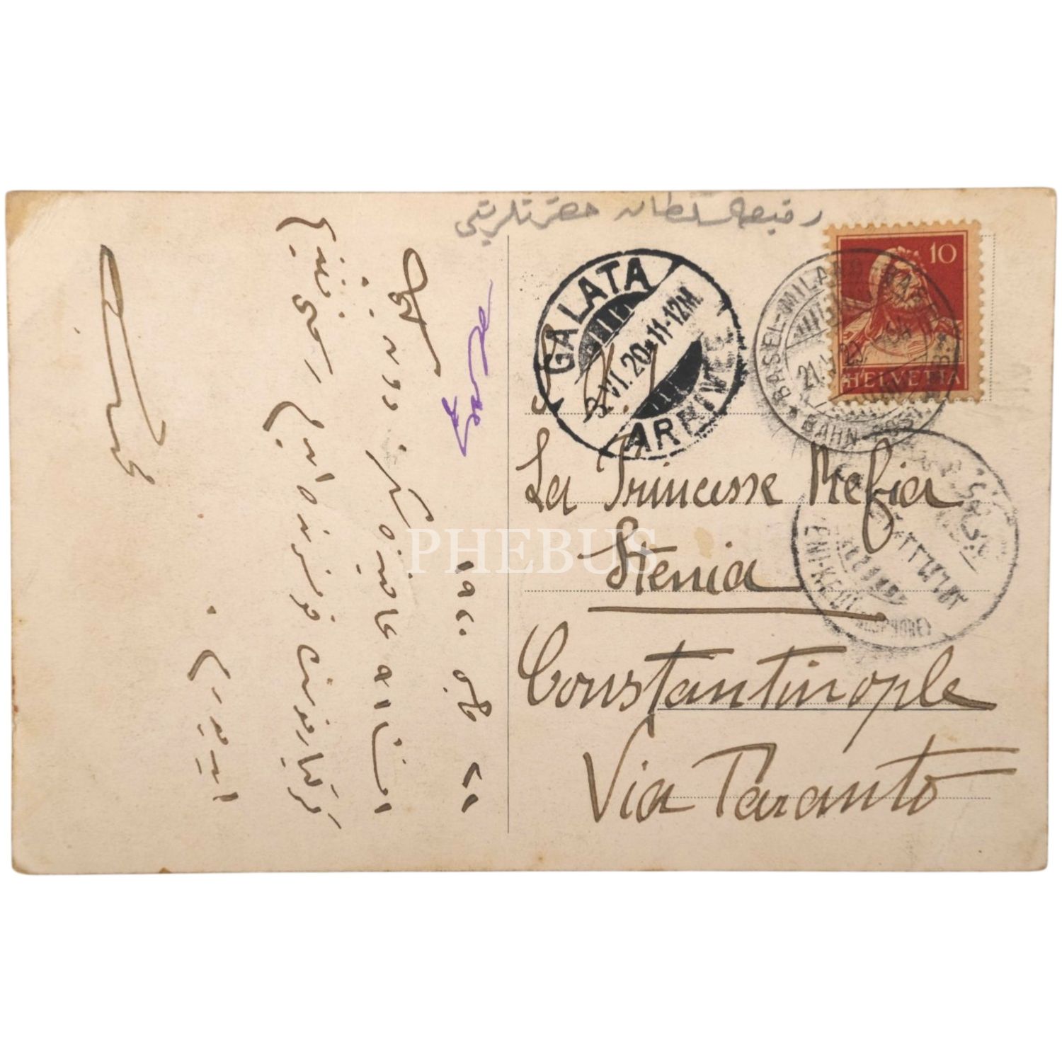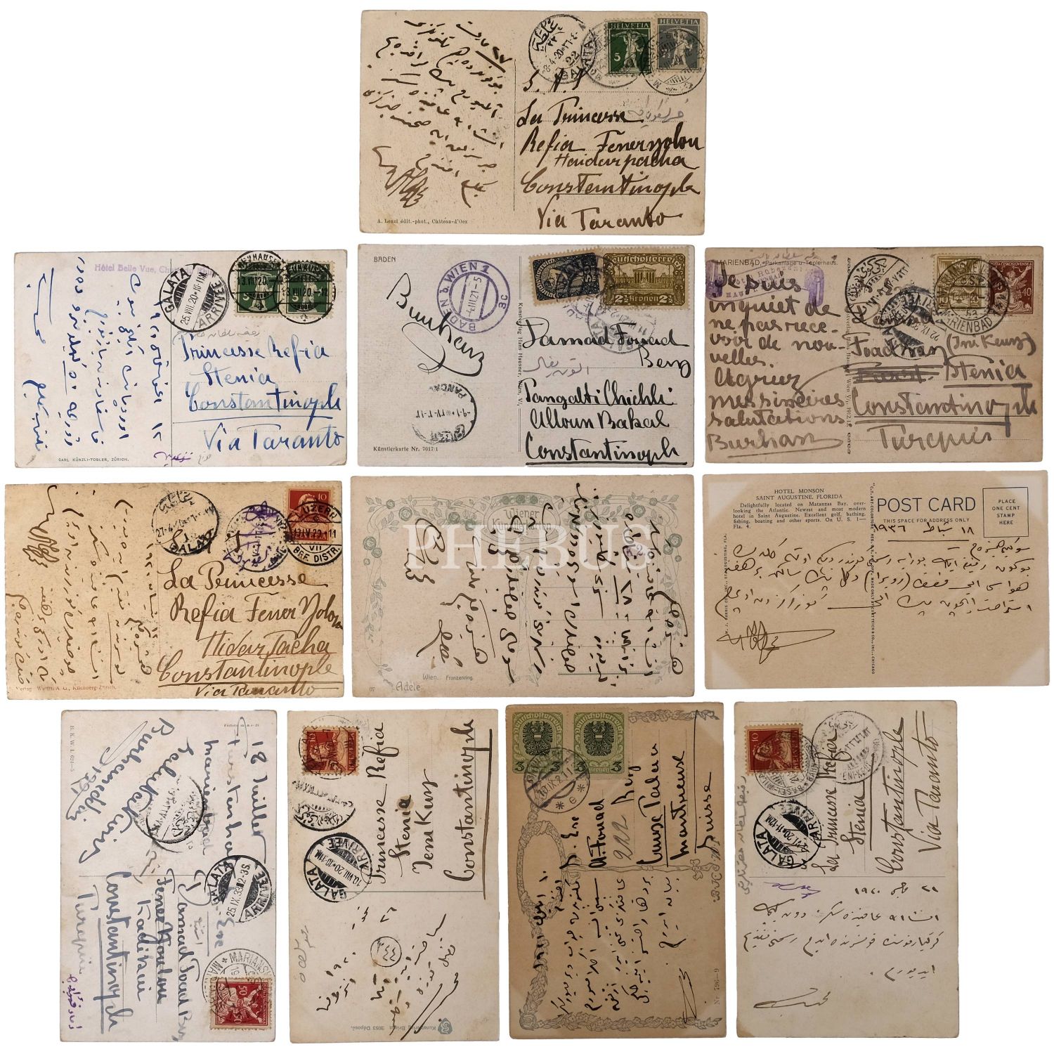 Sultan II. Abdülhamid´oğlu Şehzade Mehmed Burhaneddin Efendi´nin, kız kardeşi Refia Sultan ve eşi Ali Fuat Bey´e Avrupa´nın çeşitli ülkelerinden gönderdiği 11 adet kartpostal, 14x9 cm...