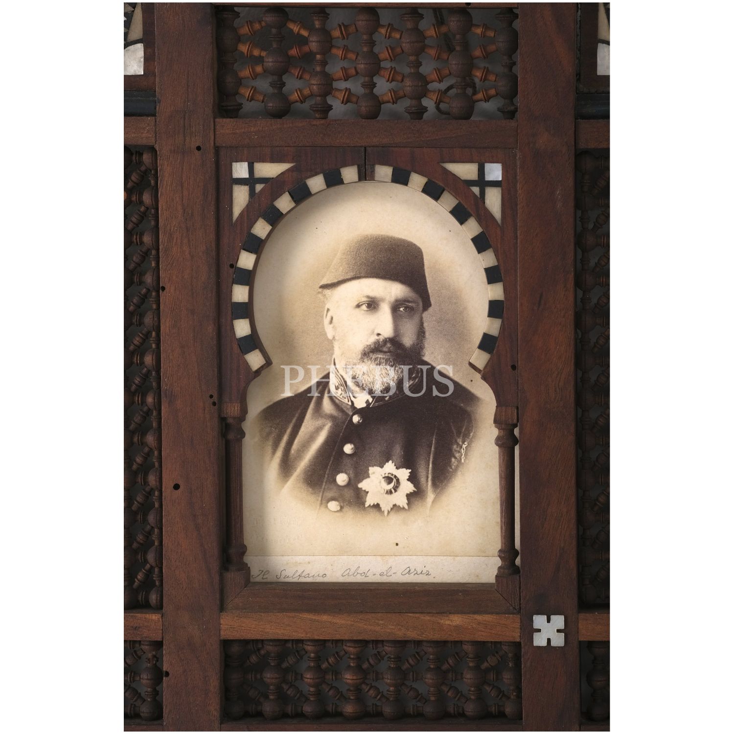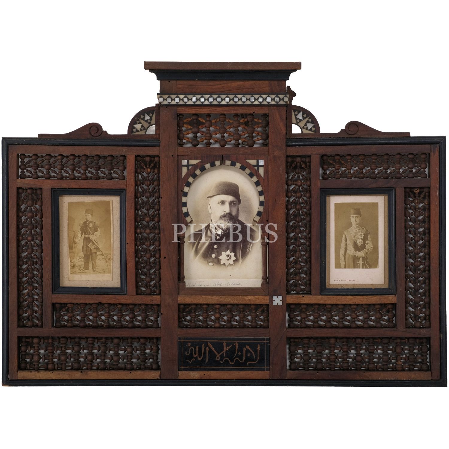 Sultan Abdülaziz ve şehzadesi Yusuf İzzettin Efendi´nin çovukluk ve gençlik çağlarında çekilmiş fotoğraflarının yer aldığı, sedef ve ahşap işçilikli, "La ilahe illallah" yazılı görkemli dönem çerçevesinde 3 adet fotoğraf, 39x53 cm...