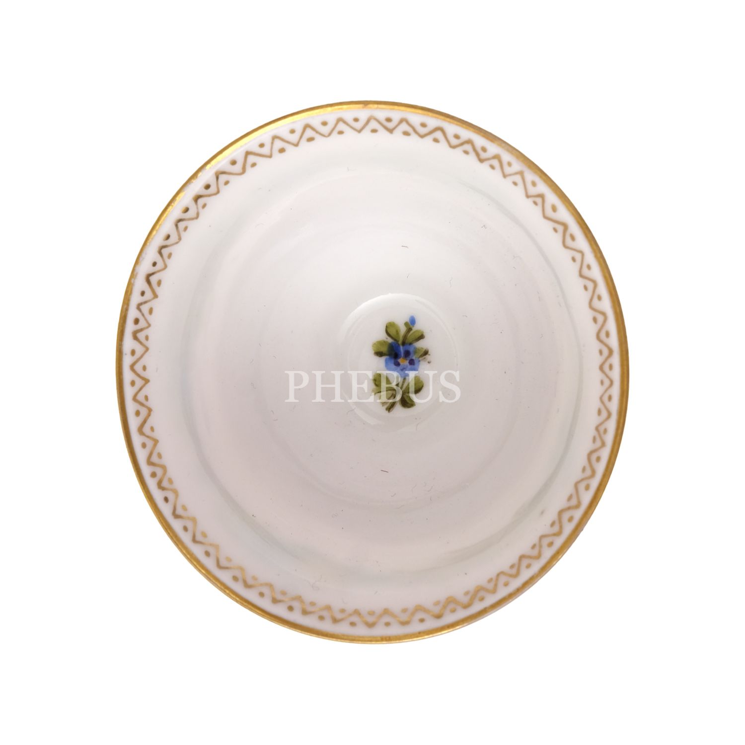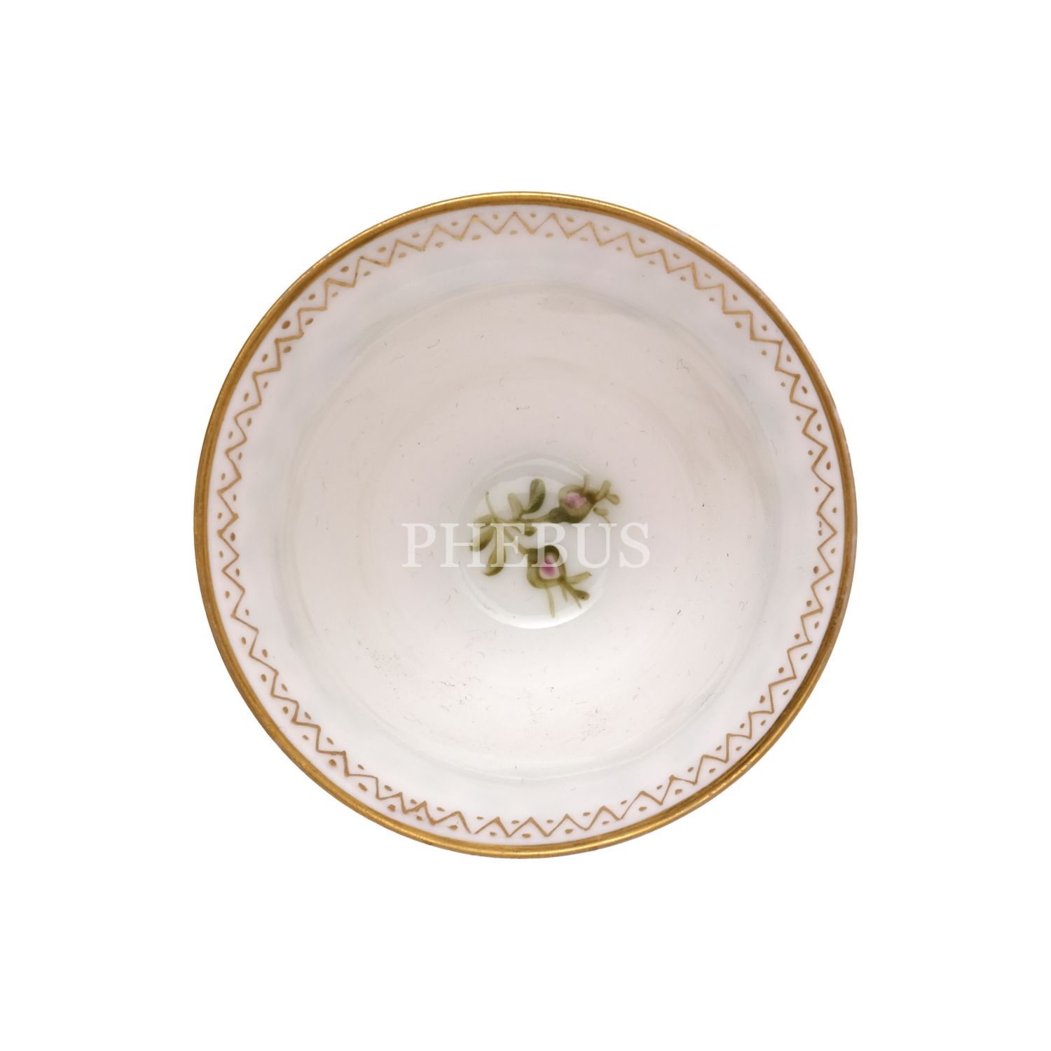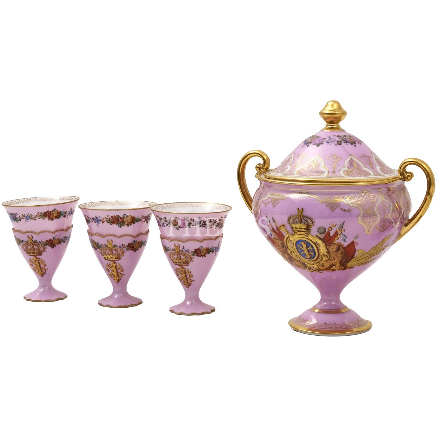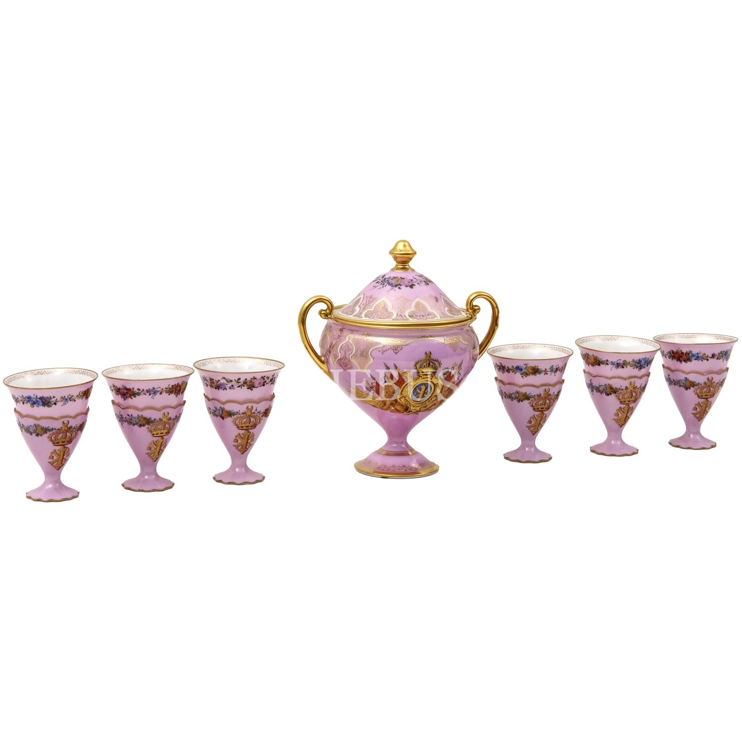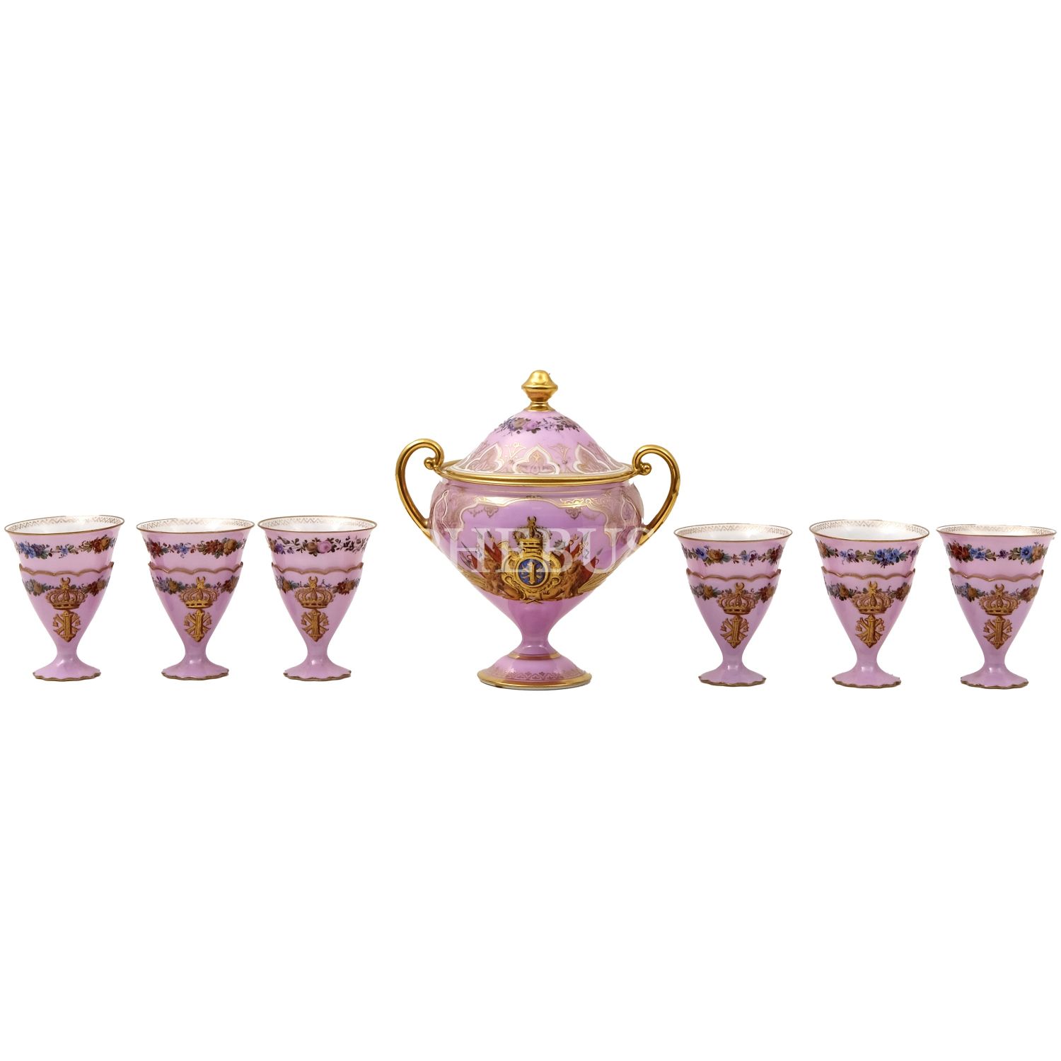 Altın yaldız konturlü, stilize floral dekorlu şekerliğin gövdesinde Hıdiv taçlı, inisiyalli devlet arması yer almaktadır. Her birinin dibinde çiçek motifi yer alan fincanlar altın yaldız konturlü, stilize floral dekorludur. Her birinde inisiyal yer alan zarflar da altın yaldız konturlü ve stilize floral dekorludur. Ağızları ve tabanları dilimlidir.