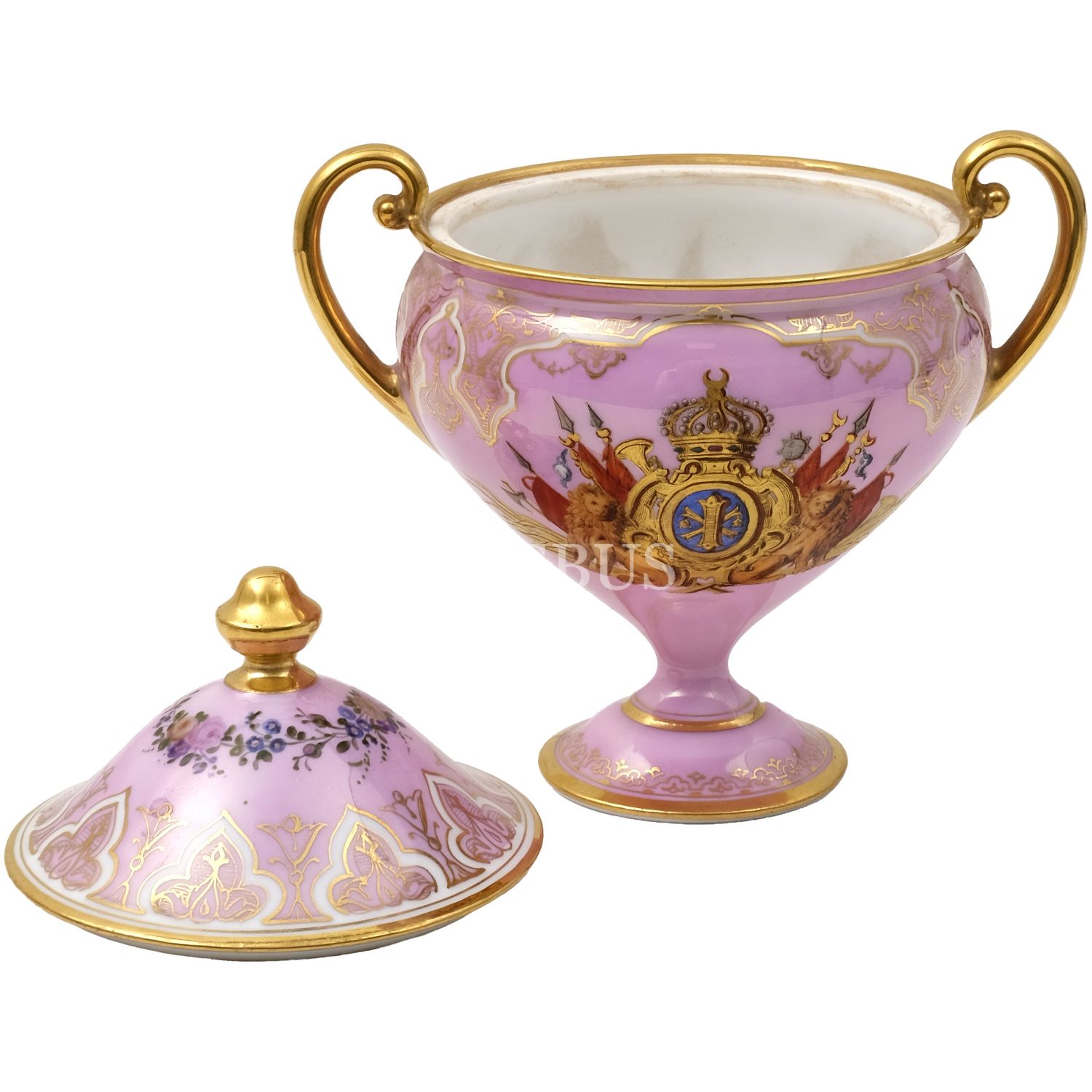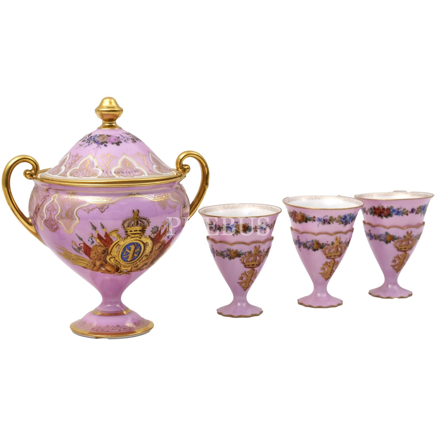 I. Fuad'ın (Ahmed Fuad Paşa); Hıdiv tacı, defne yaprağı ve yıldızlarla bezeli özel çerçeve içinde yer alan, elle renklendirilmiş portre fotoğrafı ile kendisine ait porselen şekerlik, zarf ve fincan (6 adet) seti, fotoğraf (çerçevesiyle birlikte) 31x47 cm, şekerlik 15x11,5x9 cm, zarflar 5x4,5 cm, fincanlar 4x5,5 cm...