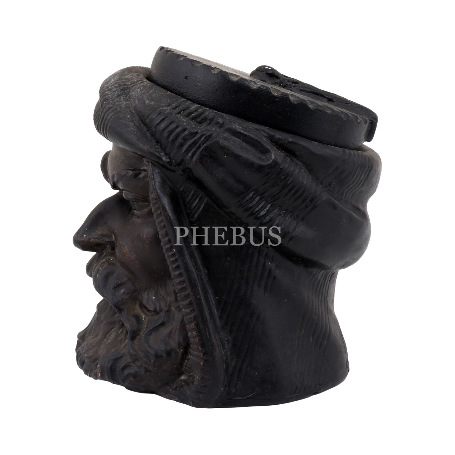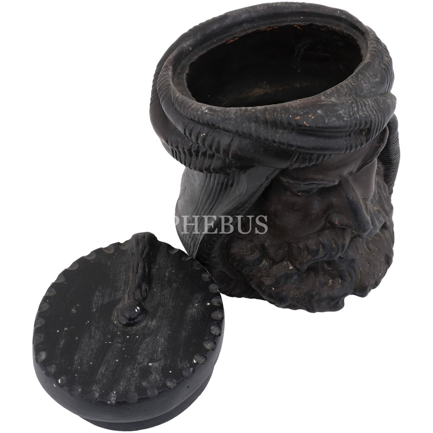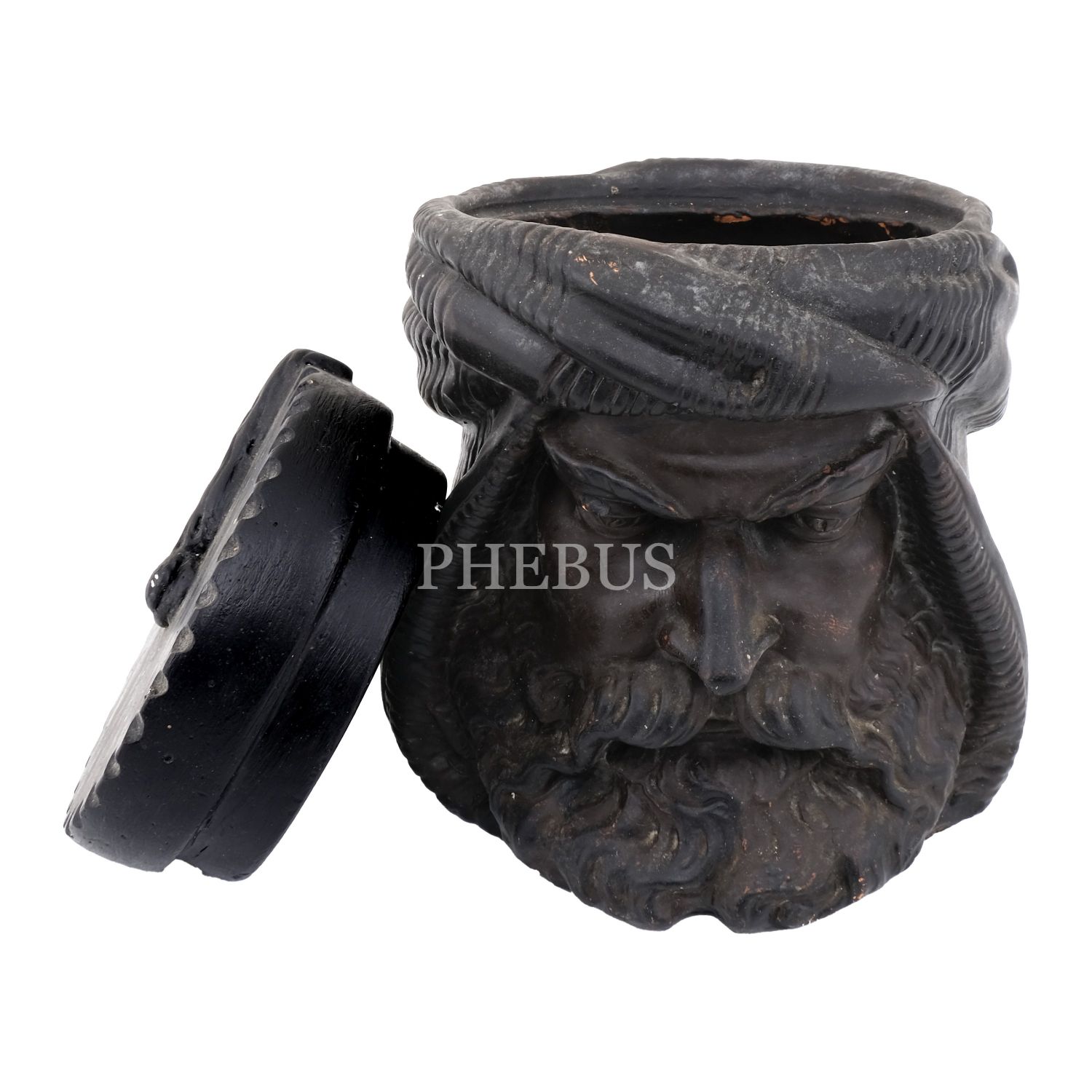 Kavuk üzerine sarıklı, sakallı bir oryantal figür başı formunda seramik tütünlük, 14x11,5x11,5 cm...