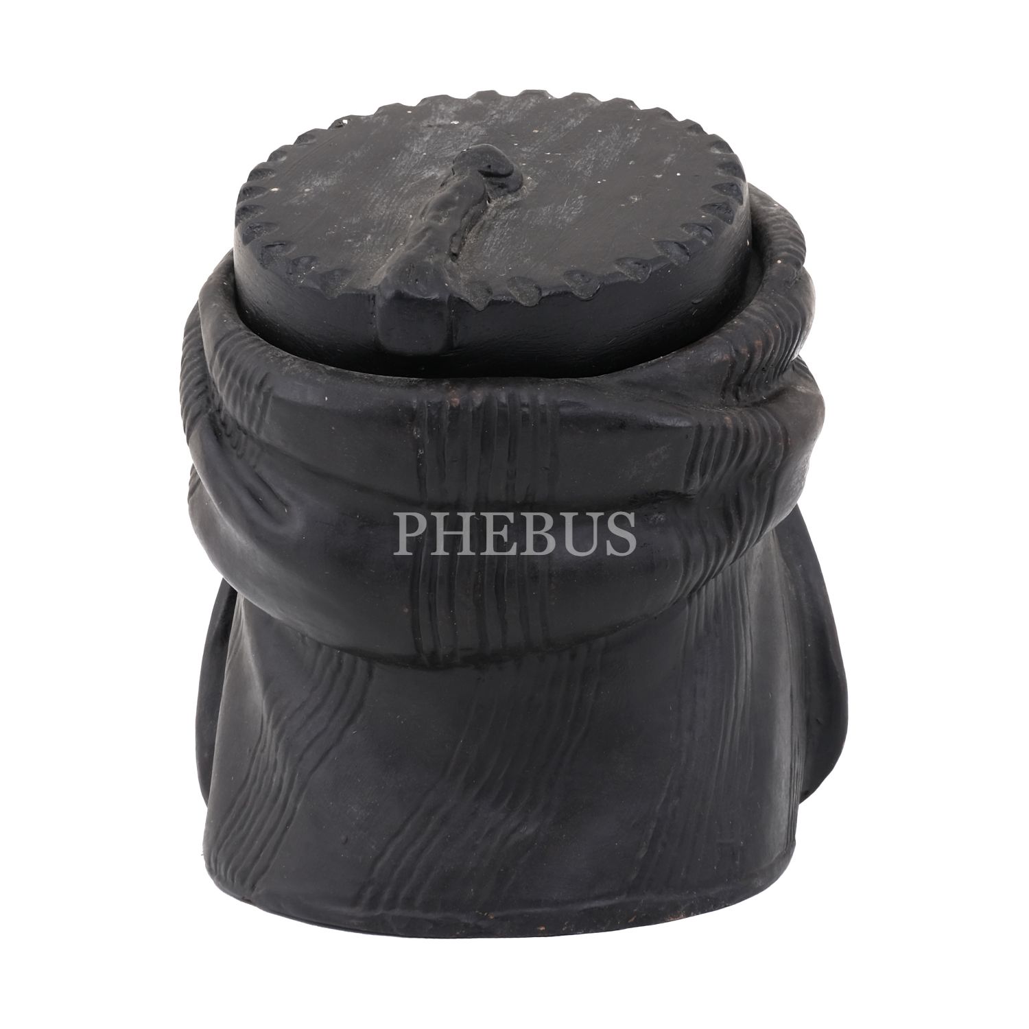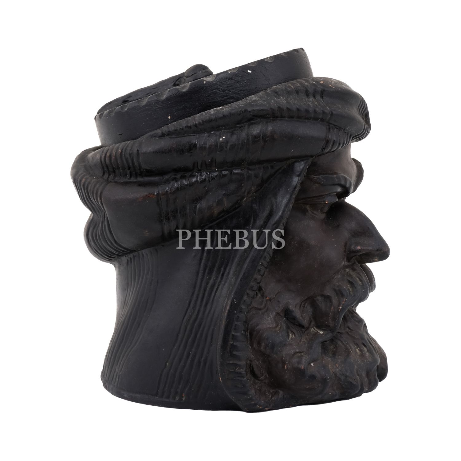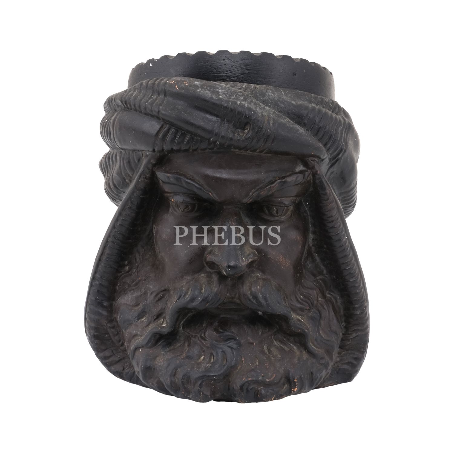 Kavuk üzerine sarıklı, sakallı bir oryantal figür başı formunda seramik tütünlük, 14x11,5x11,5 cm...