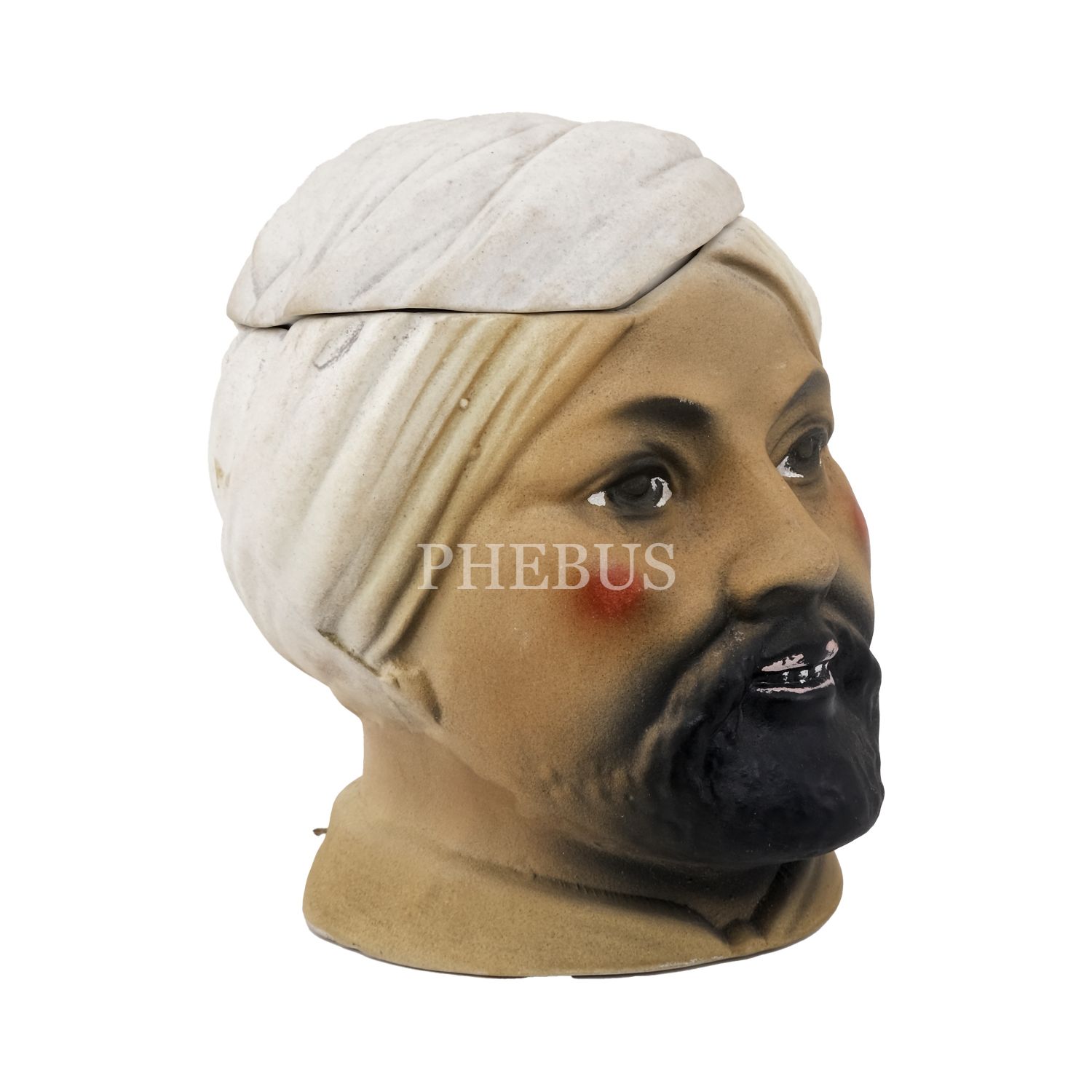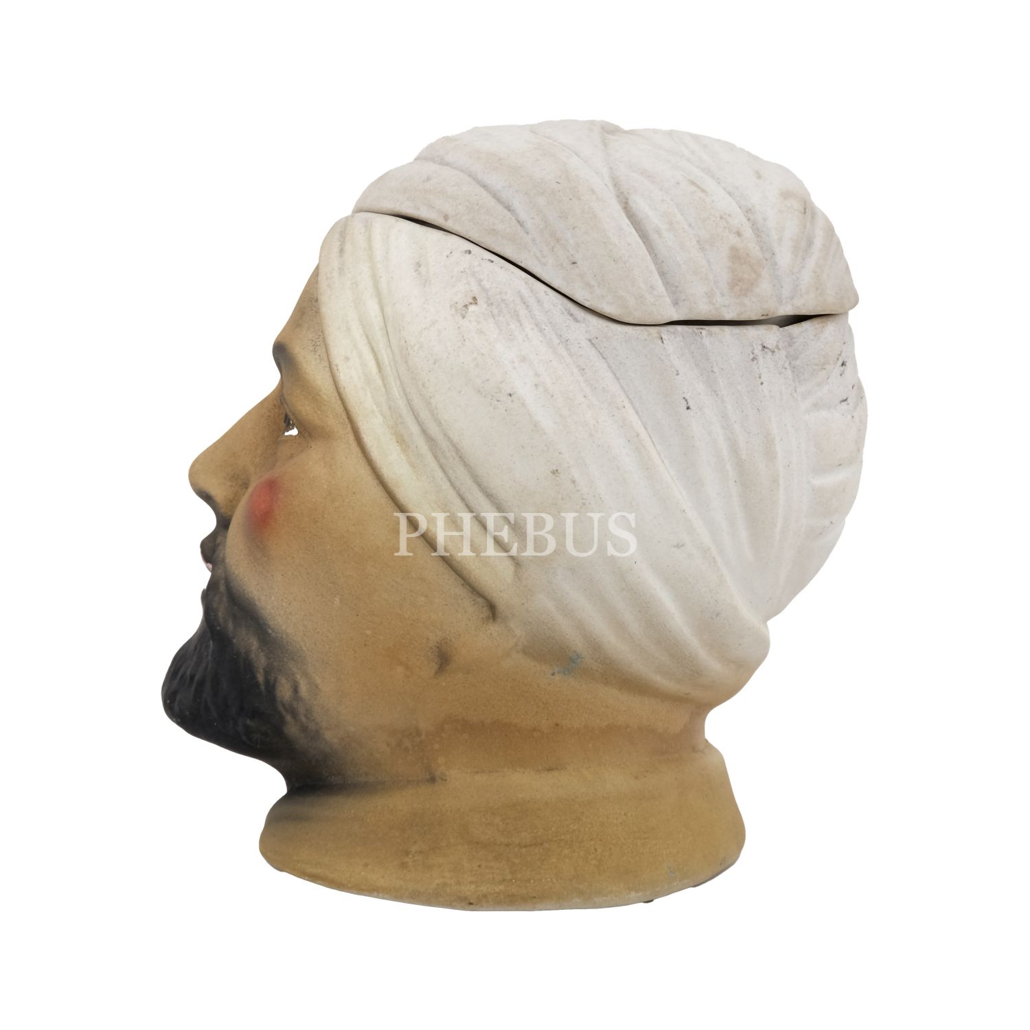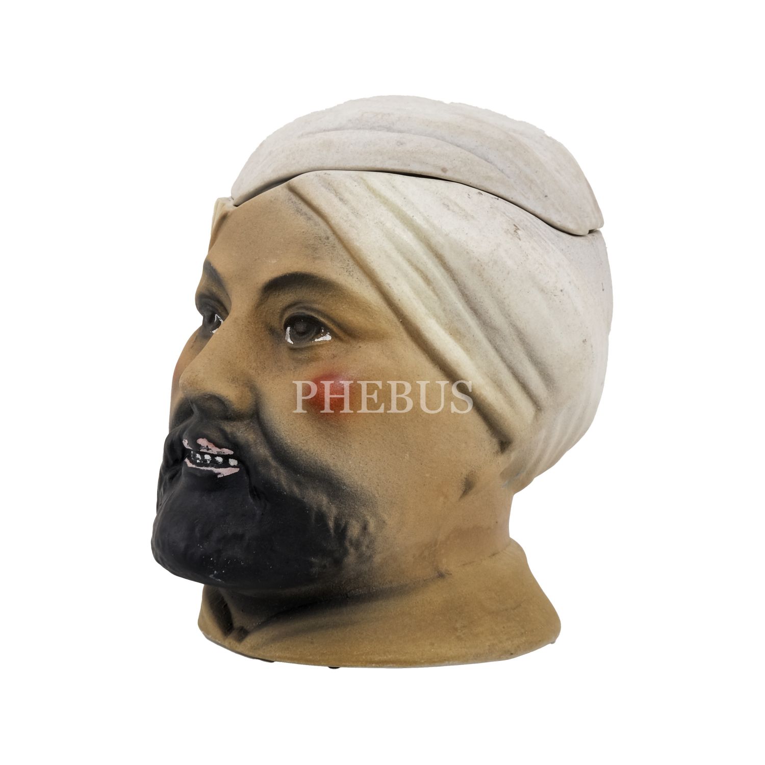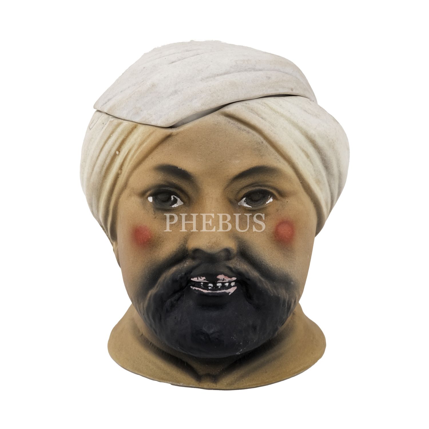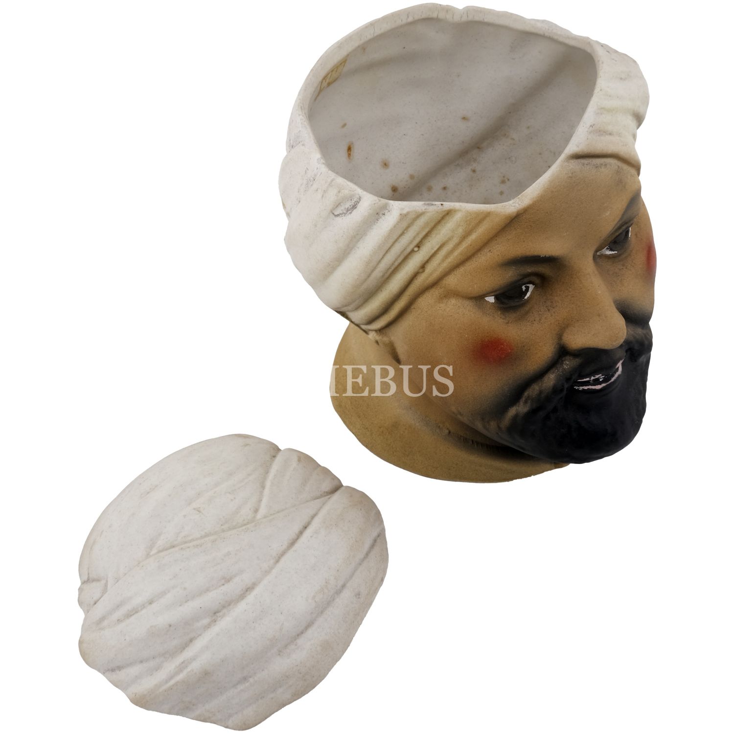 Sarıklı bir oryantal figür başı formunda seramik tütünlük, elle renklendirilmiş, 11x9x9,5 cm...