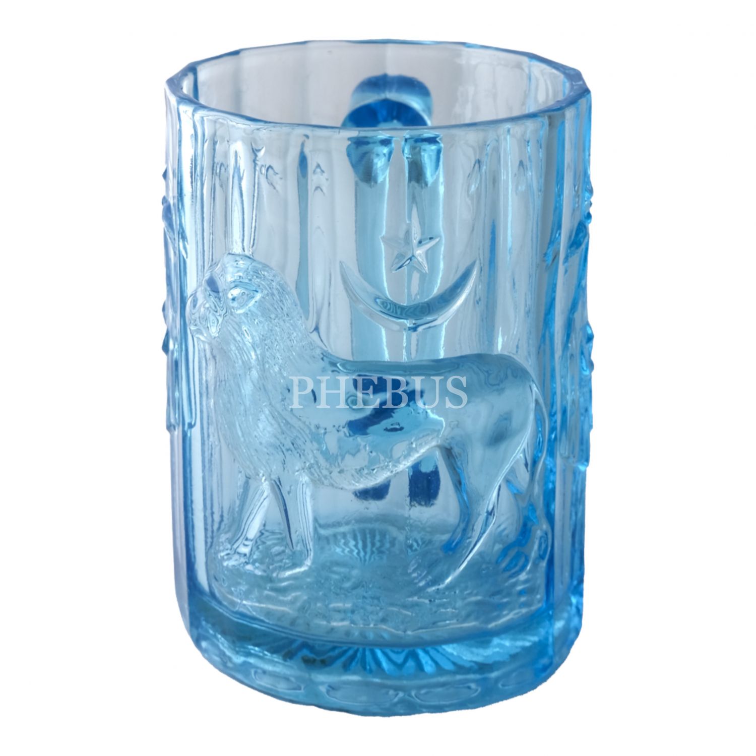 II. Meşrutiyet döneminden; arslan, ay-yıldız ve bir çift Osmanlı sancağından oluşan kabartma motifli, kulplu bardak, 13x10 cm...