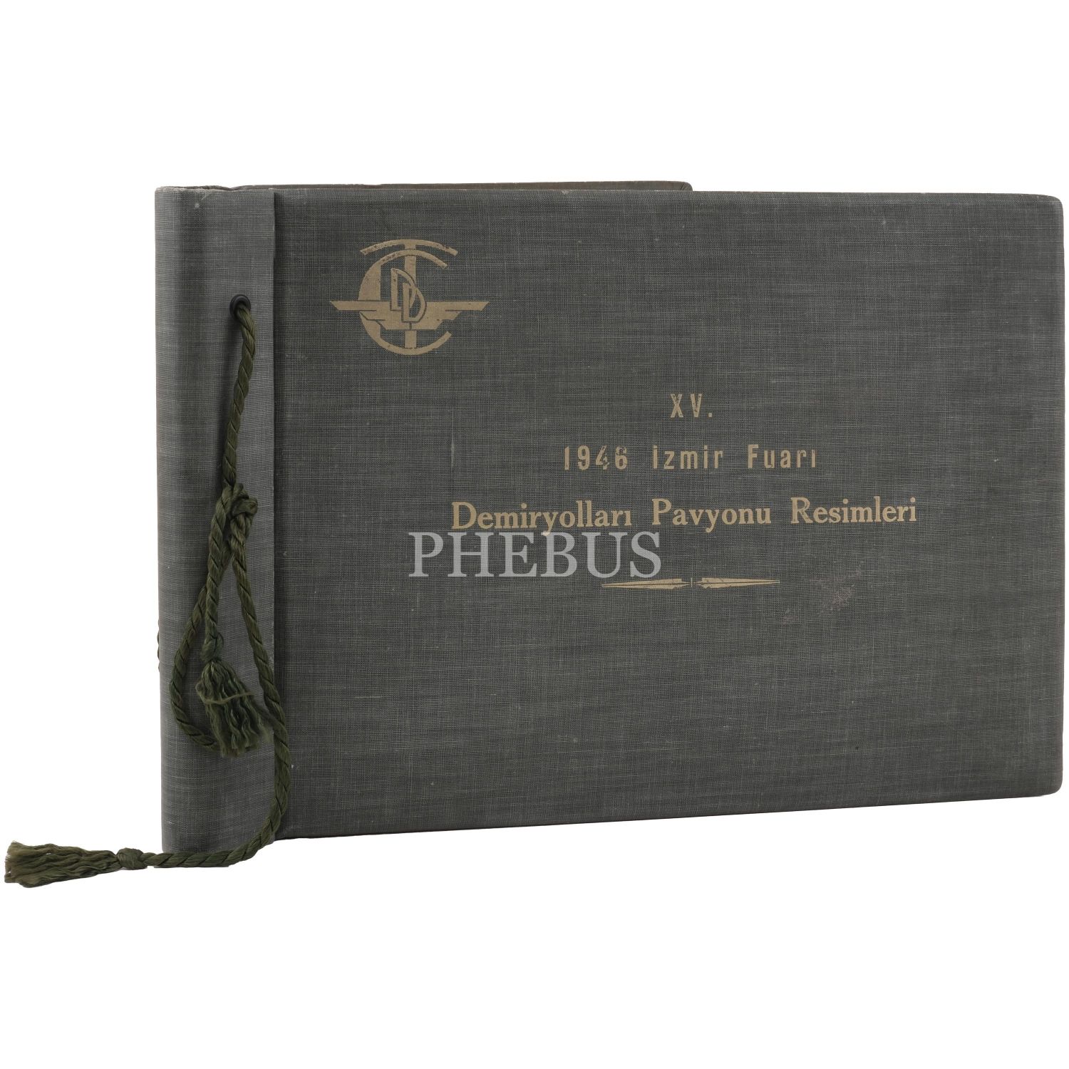 XV. 1946 İZMİR FUARI DEMİRYOLLARI PAVYONU RESİMLERİ albümü, albümde, "Foto Hikmet - Beyoğlu" soğuk damgalı 24 adet fotoğraf yer almaktadır, fotoğraflar 23x17 cm, albüm 37x25 cm...