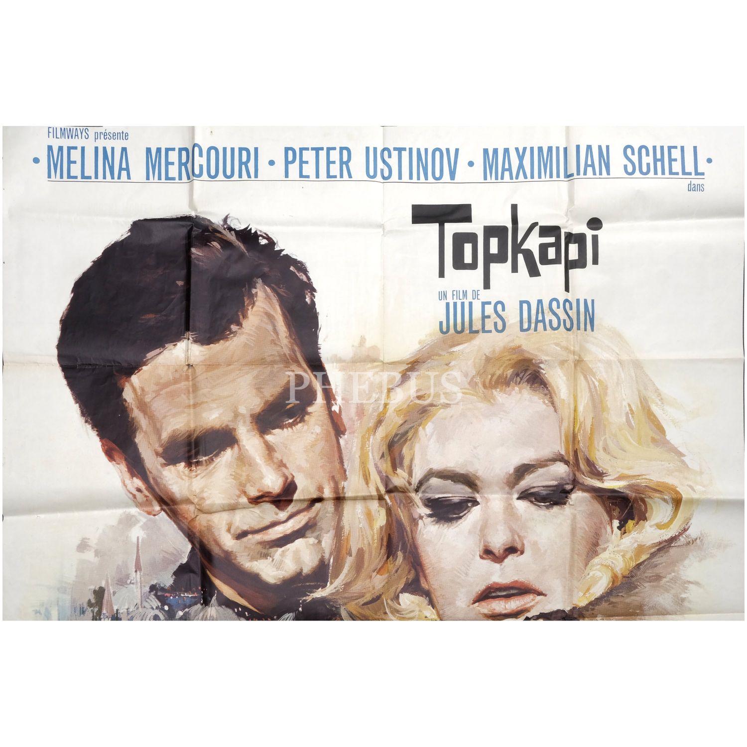 Amerikalı yönetmen Jules Dassin´in yönettiği, başrollerini Melina Merkuri, Peter Ustinov ve Maximilian Schell´in paylaştığı 1964 yapımı komedi/gerilim filmi "Topkapi"nin afişi, 118x160 cm...