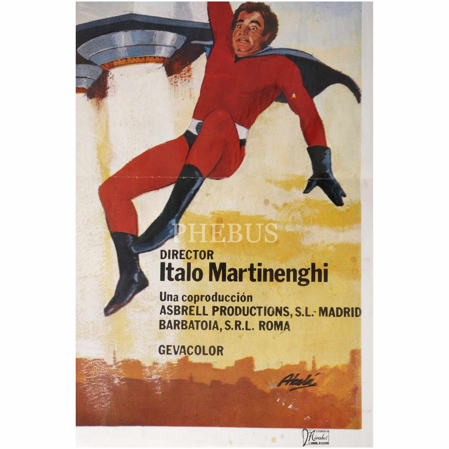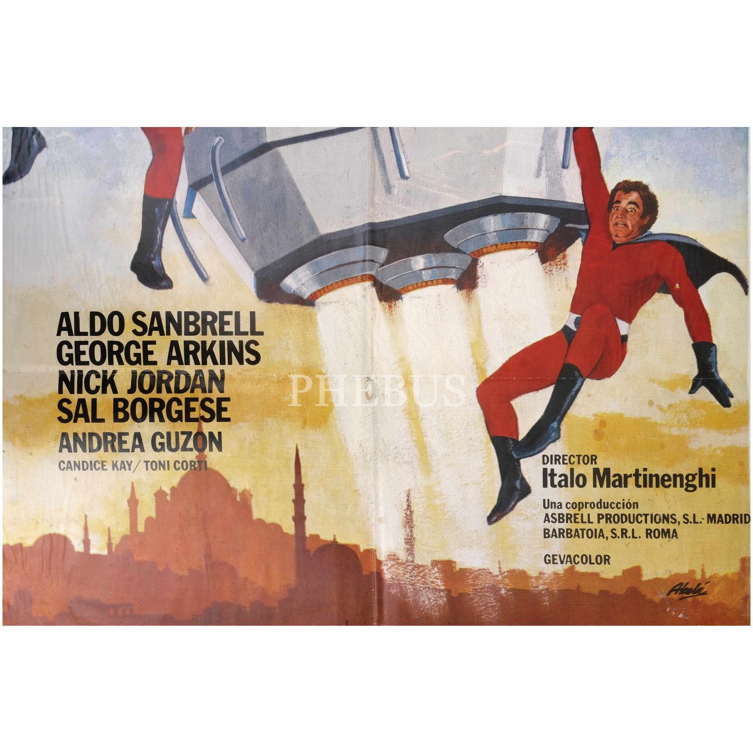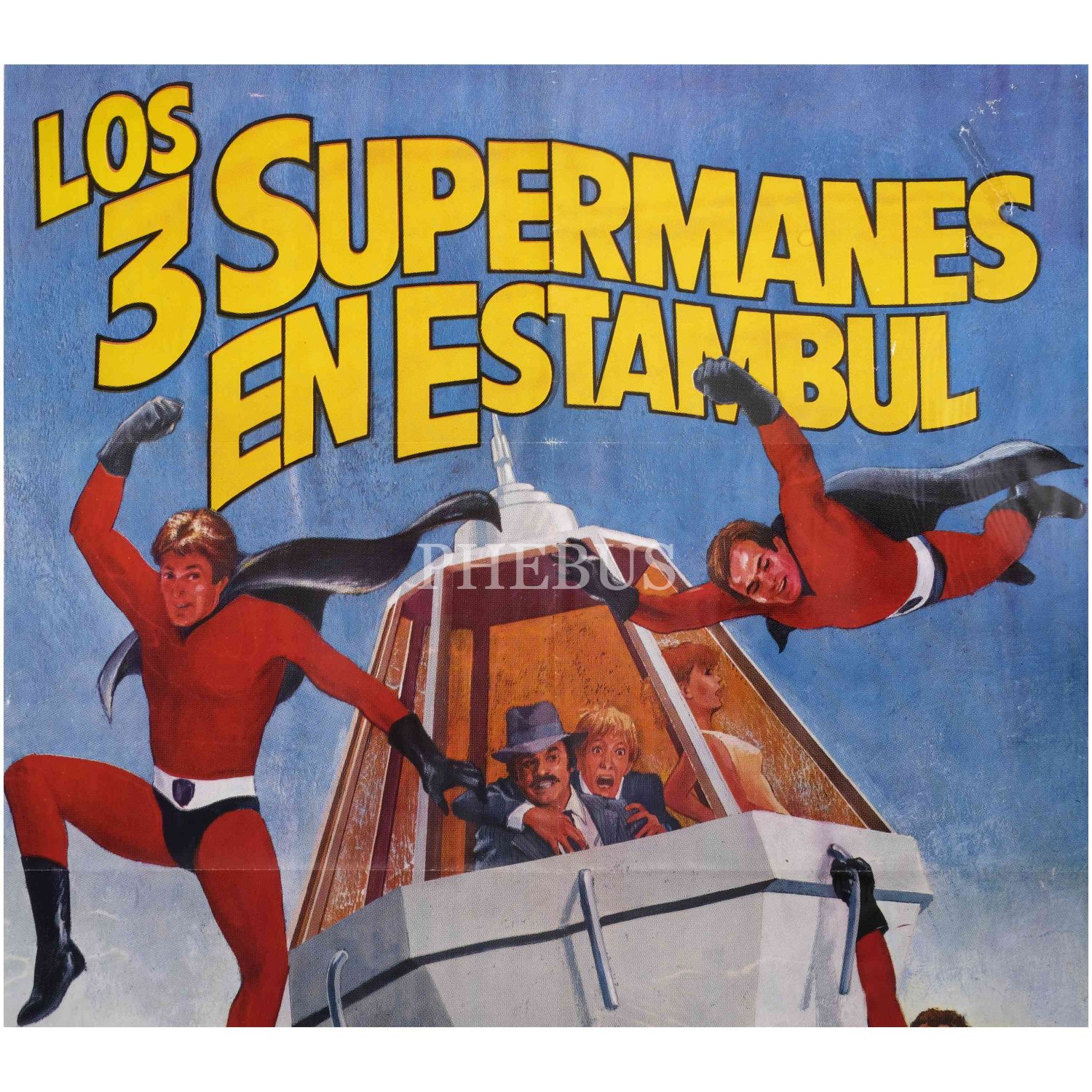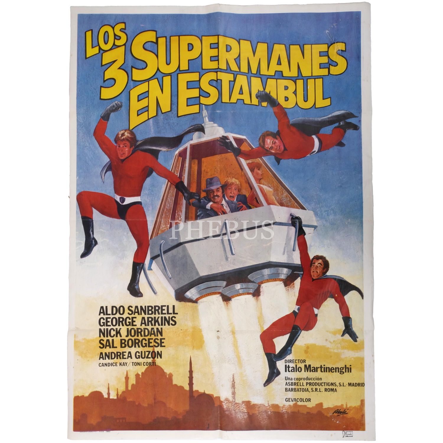İtalyan yönetmen Italo Martinenghi´nin yönettiği, başrollerini Cüneyt Arkın (George Arkins!), Aldo Sandbrell ve Nick Jordan´ın paylaştığı, Türk-İtalyan-İspanyol ortak yapımı "Süpermenler" (1979) filminin İspanyolca afişi, "Los 3 Supermanes en Estambul", Litografia Mirabet, 70x99 cm...