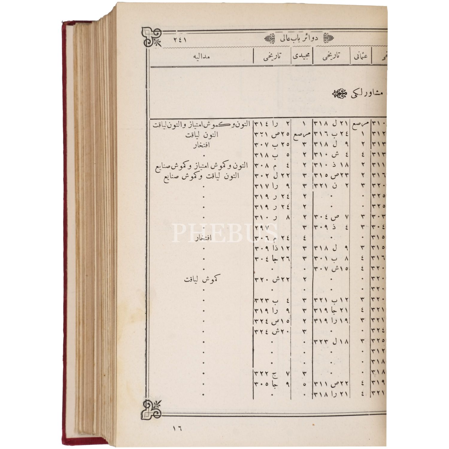 1326 SENE-İ HİCRİYESİNE MAHSUS SALNAME-İ DEVLET-İ ALİYE-İ OSMANİYE (64. Sene), 1326, Matbaa-i Ahmed İhsan, 1103 sayfa, 14x21 cm...