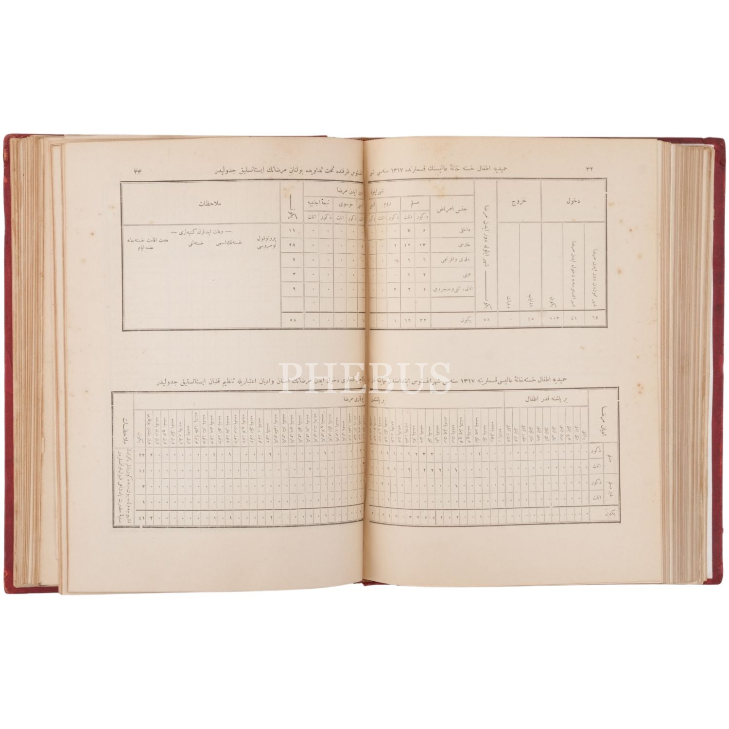 HAMİDİYE ETFAL HASTANE-İ ALİSİNİN İSTATİSTİK MECMUA-İ TIBBİYESİ (3 ve 6. Sene), Hamidiye Etfâl Hastanesi Doktorları, Matbaa-i Osmaniye, 21x28 cm...