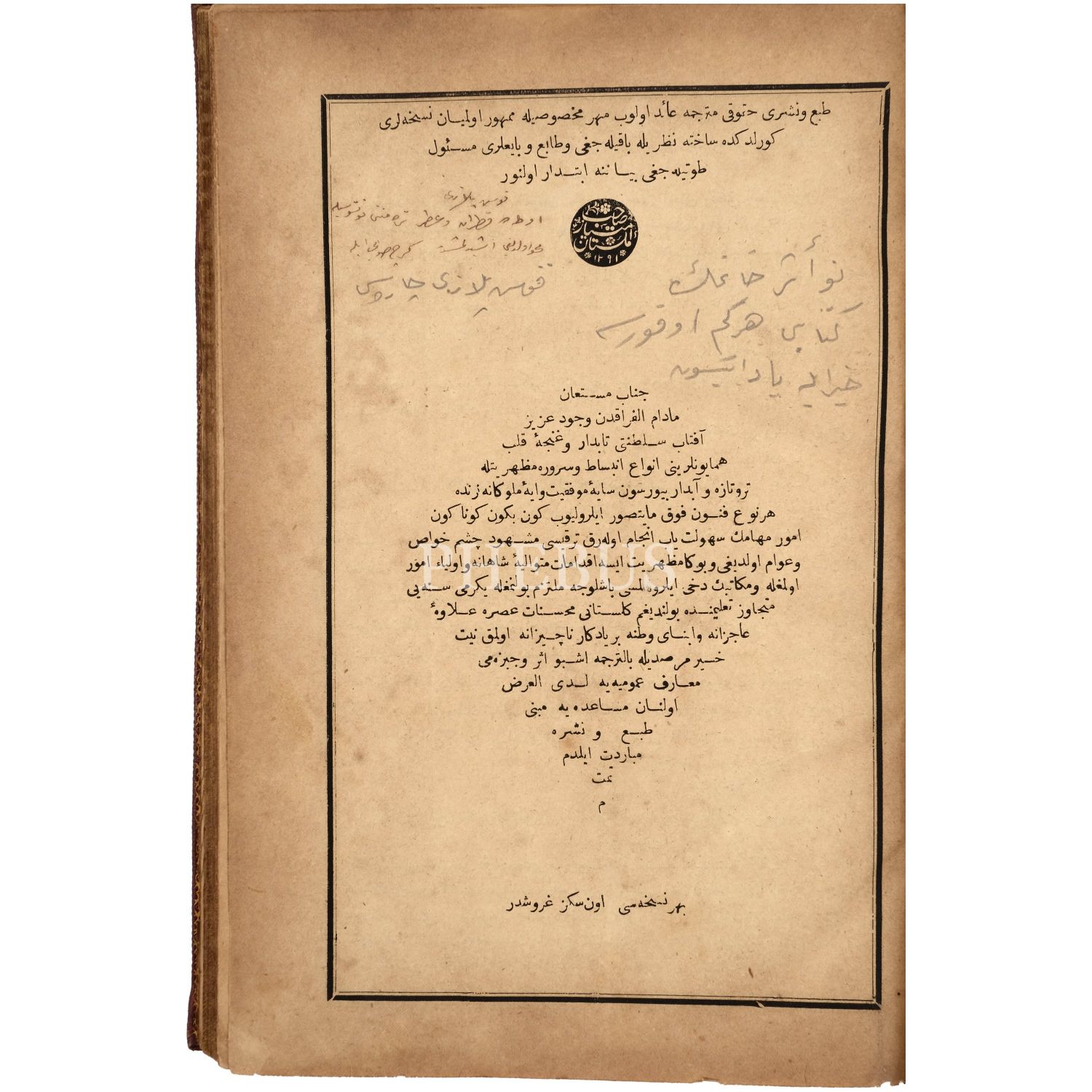 Sultan Abdülaziz tuğralı deri dönem cildinde...
