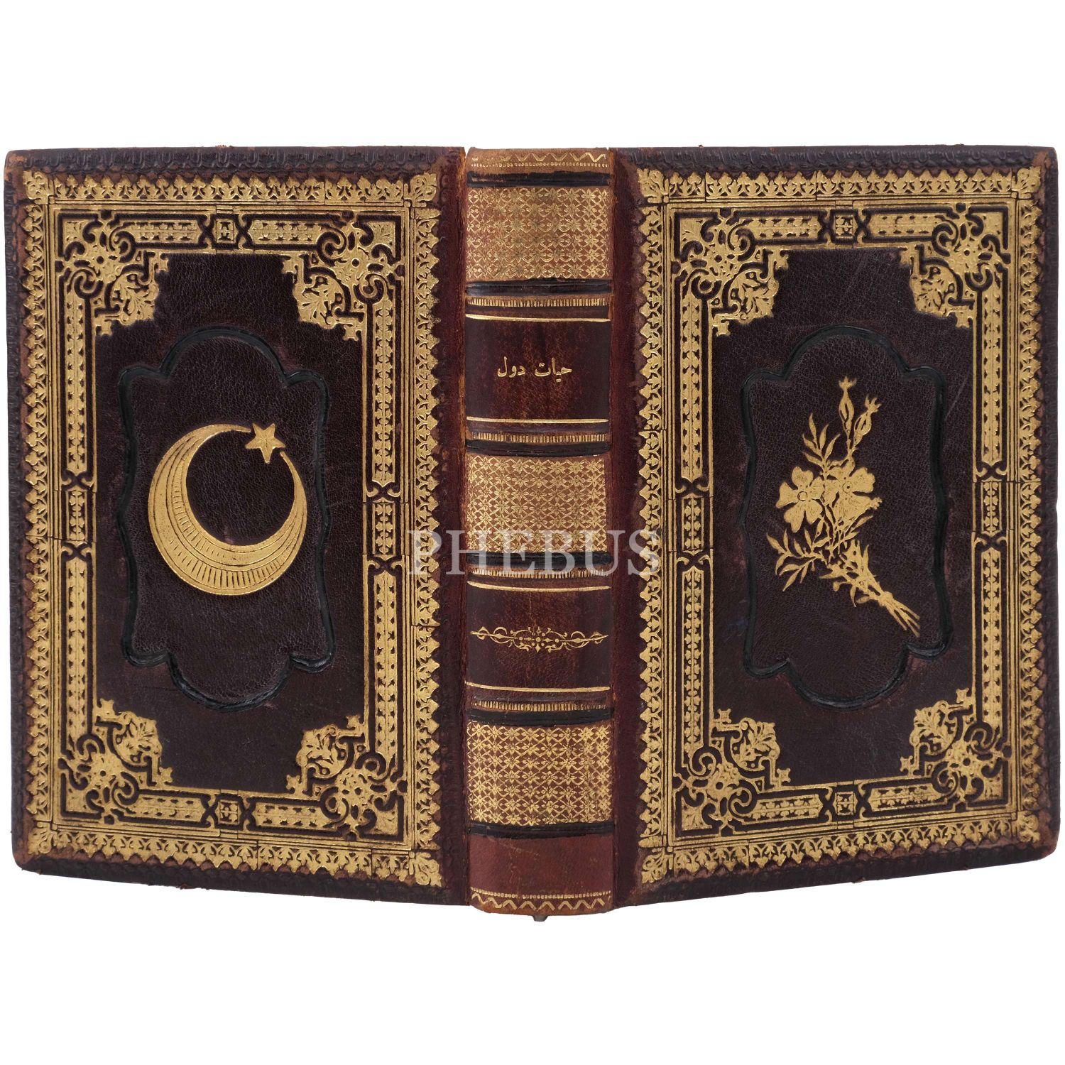 Kapakları hilal-yıldız ve floral desenlerle süslenmiş, sırtı altın yaldız panelli, sayfa kenarları altın yaldızlıdır.